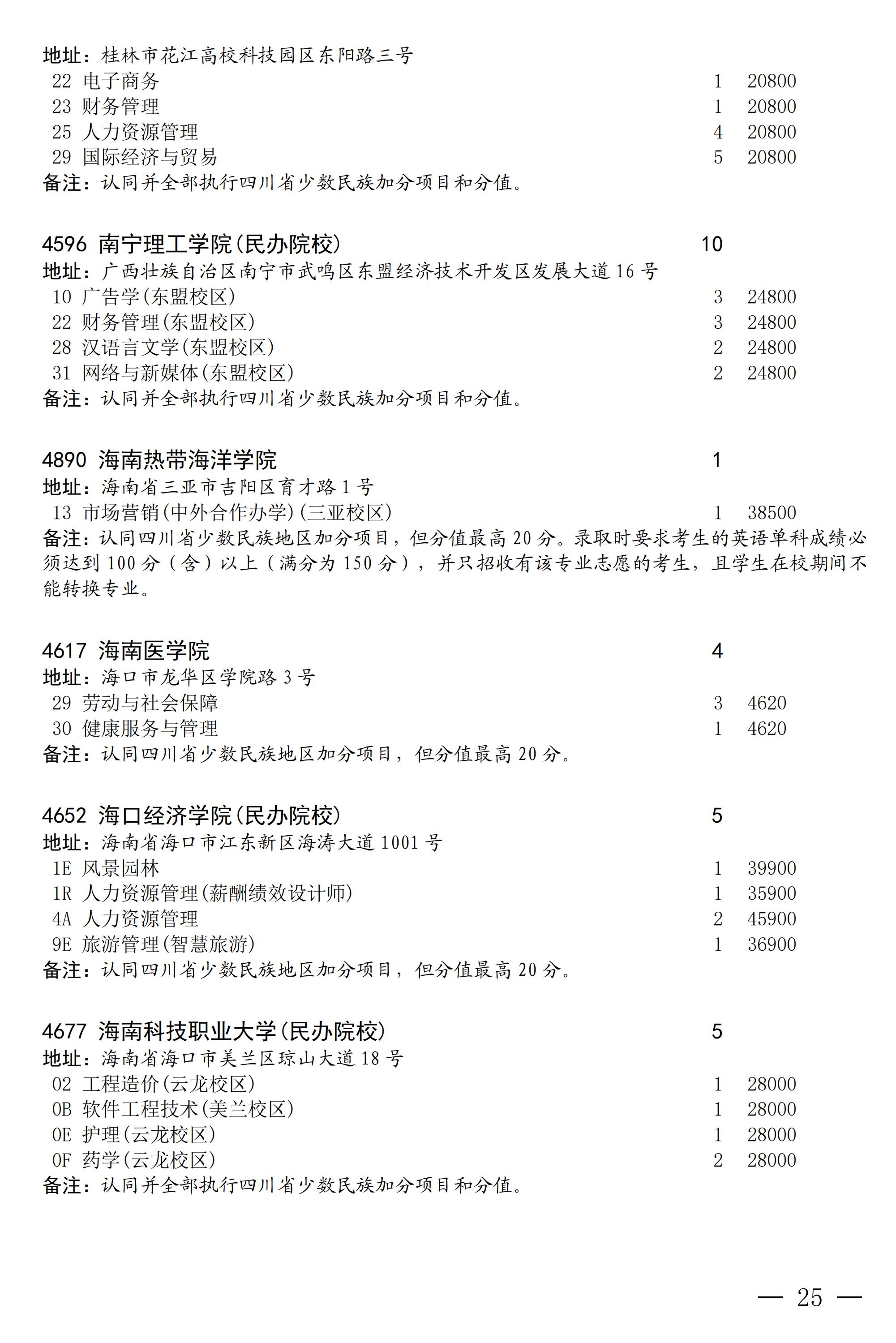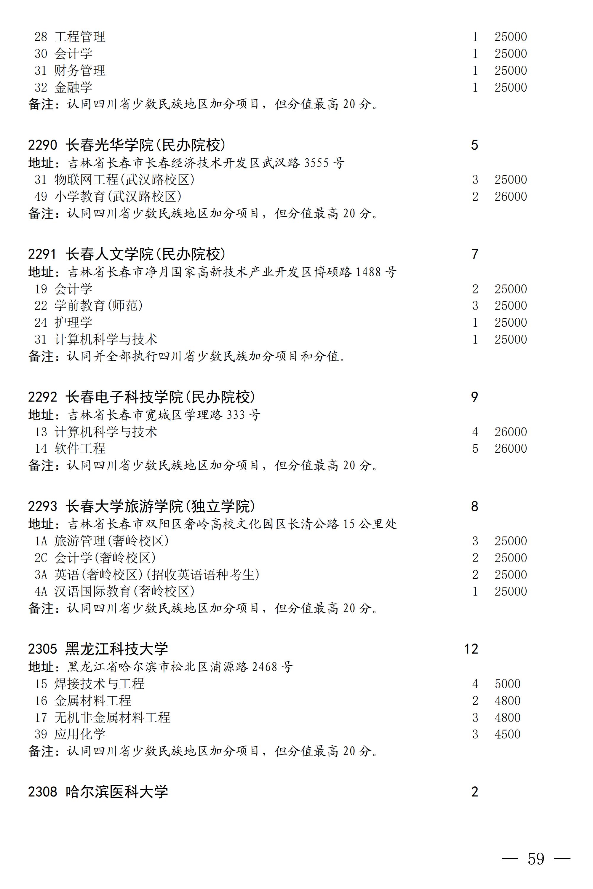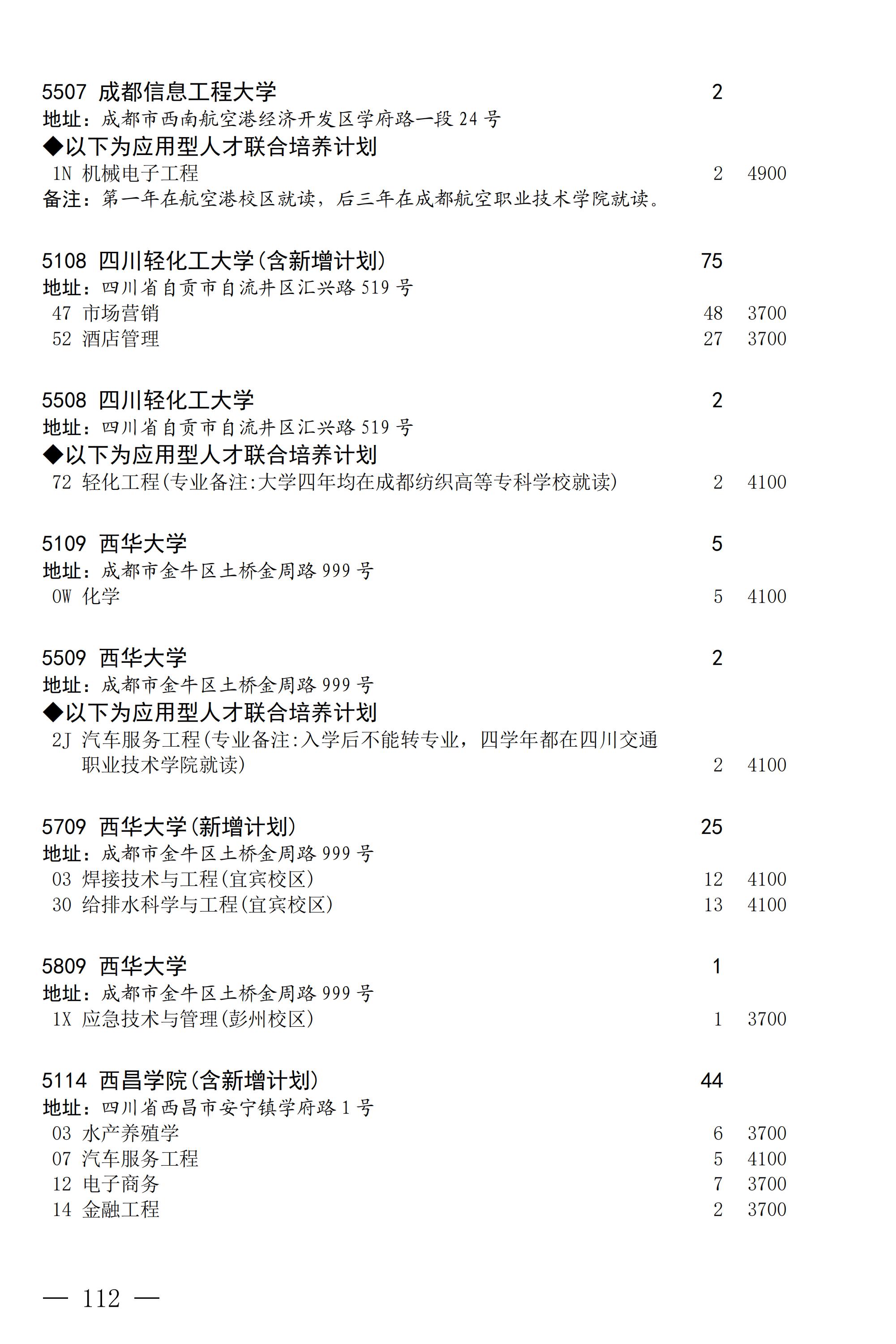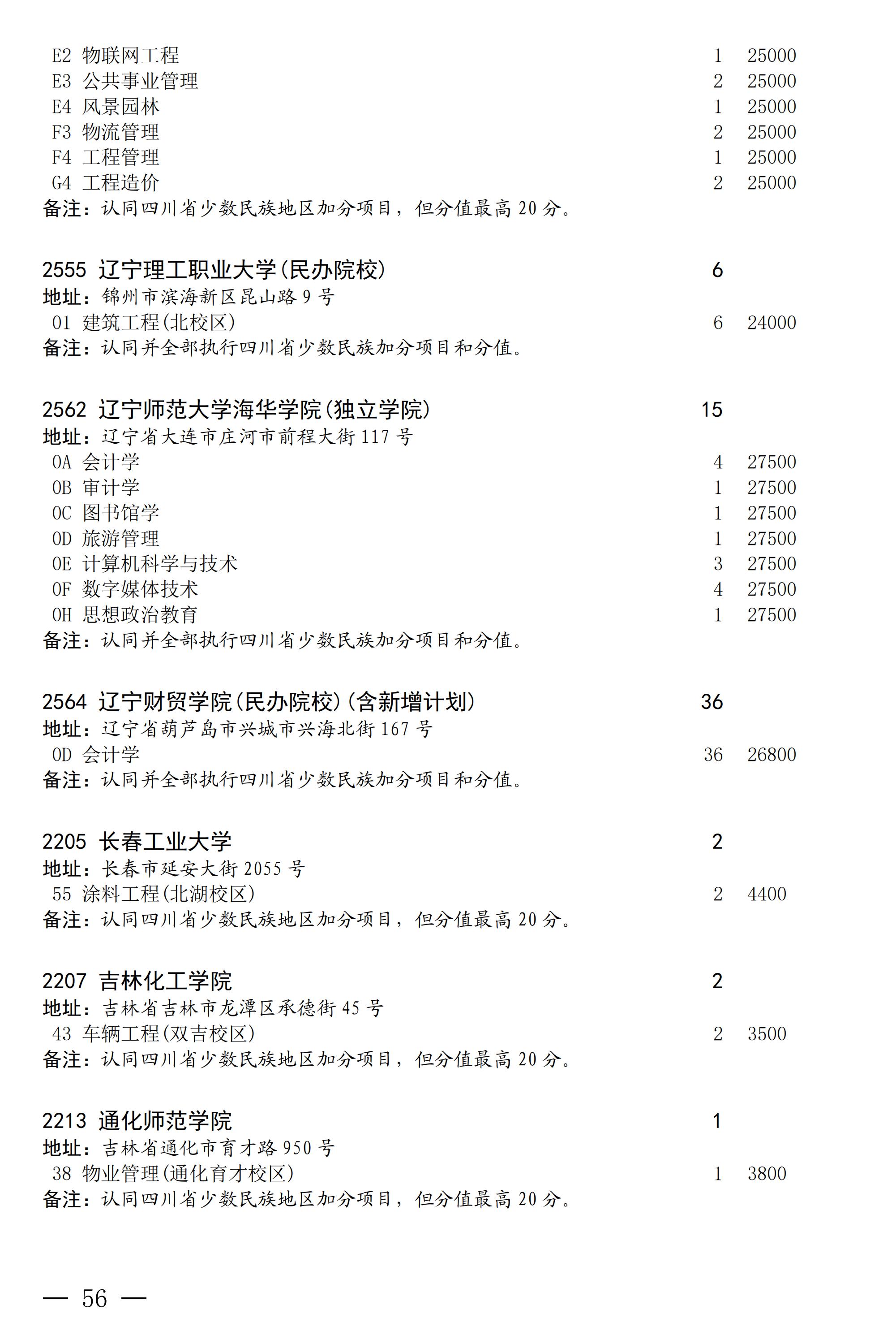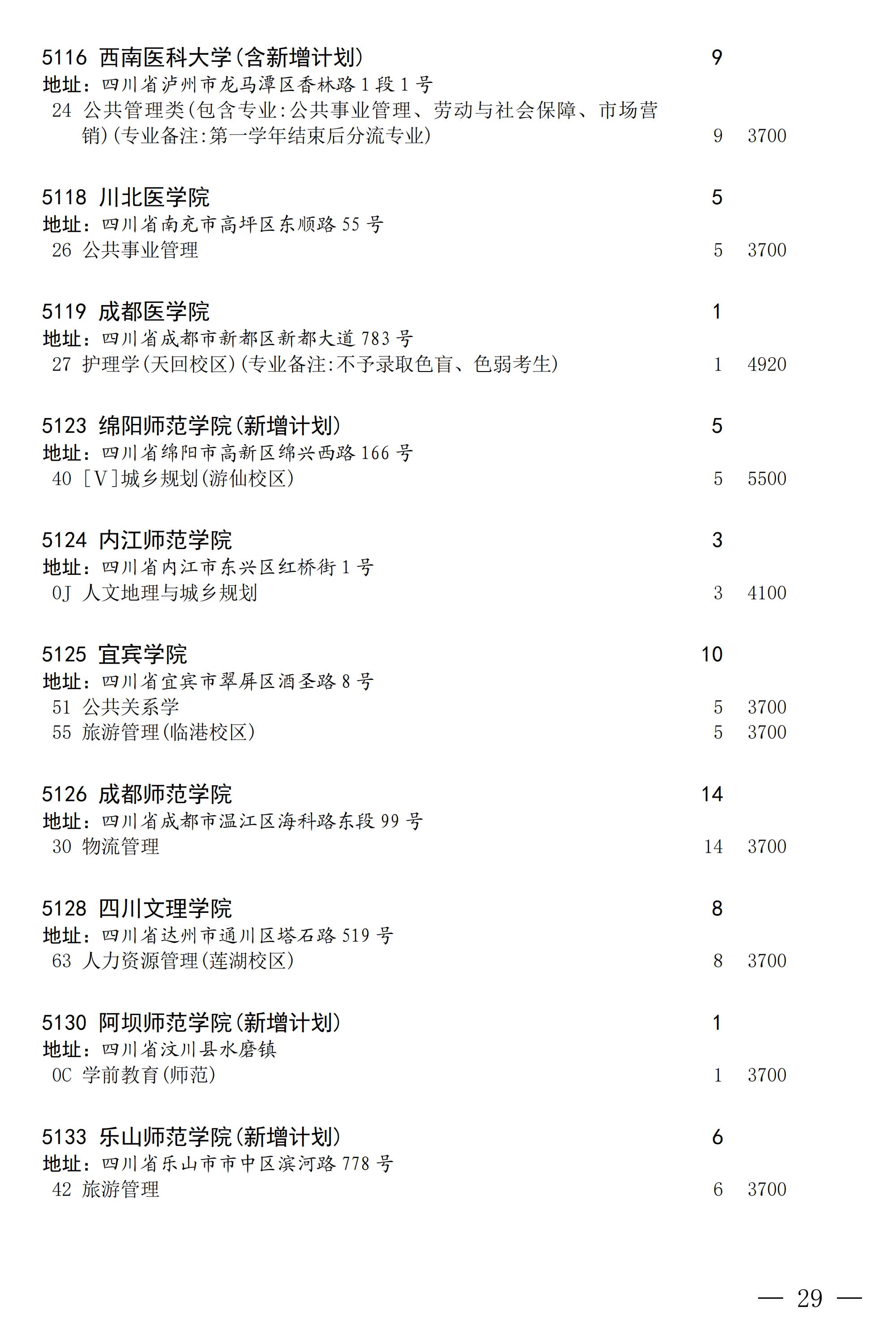 四川省2025年普通高校专升本招生专业及计划