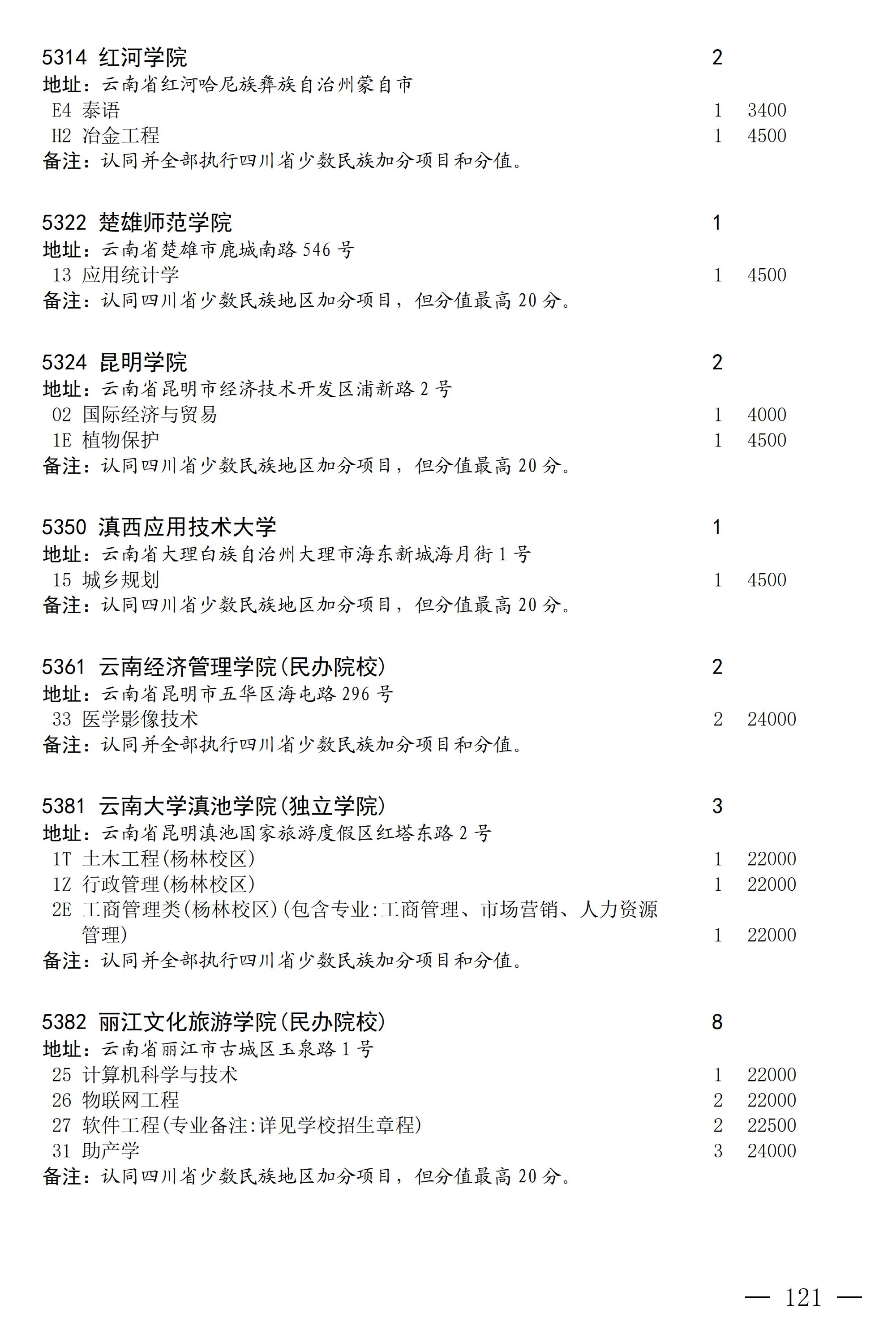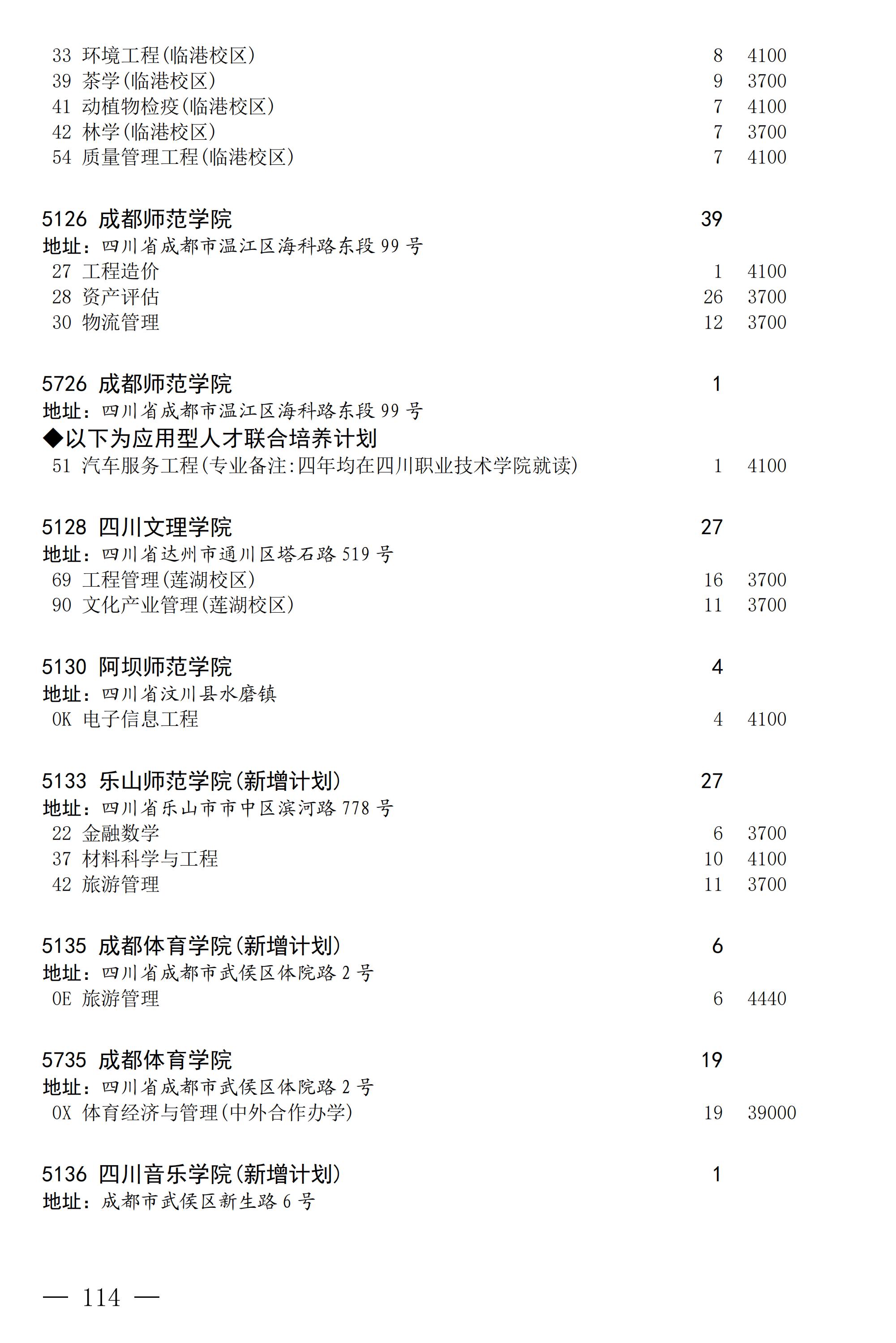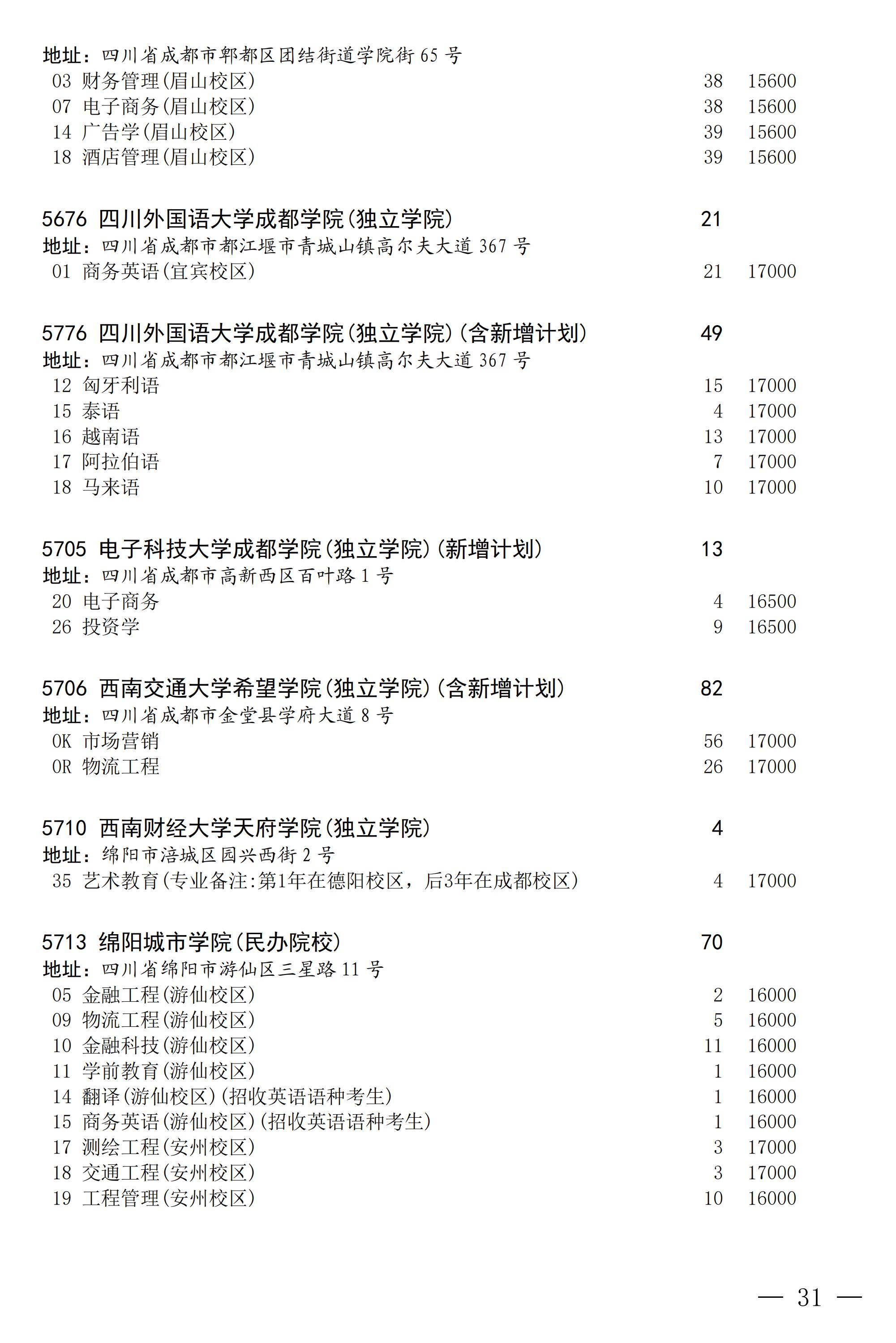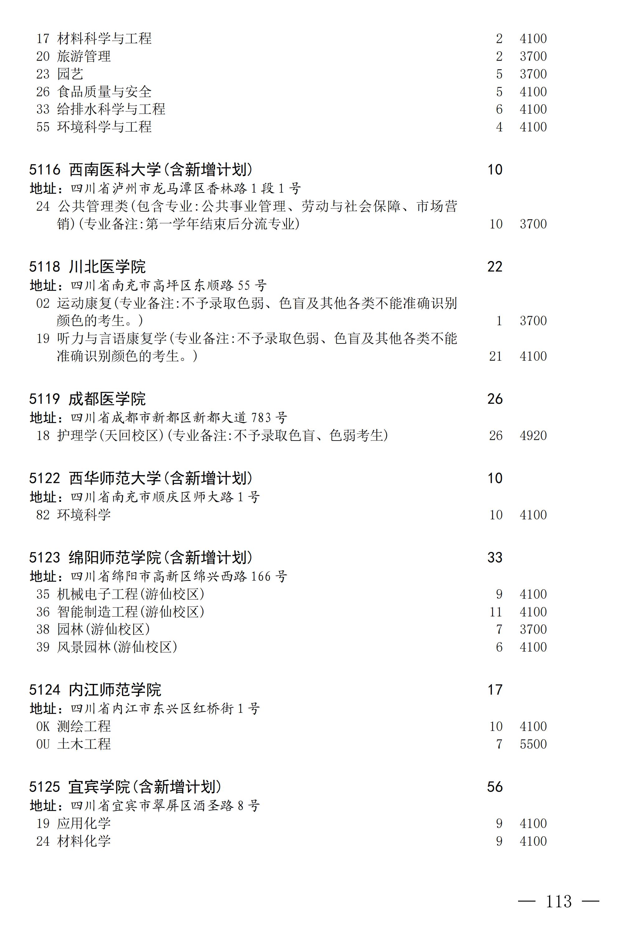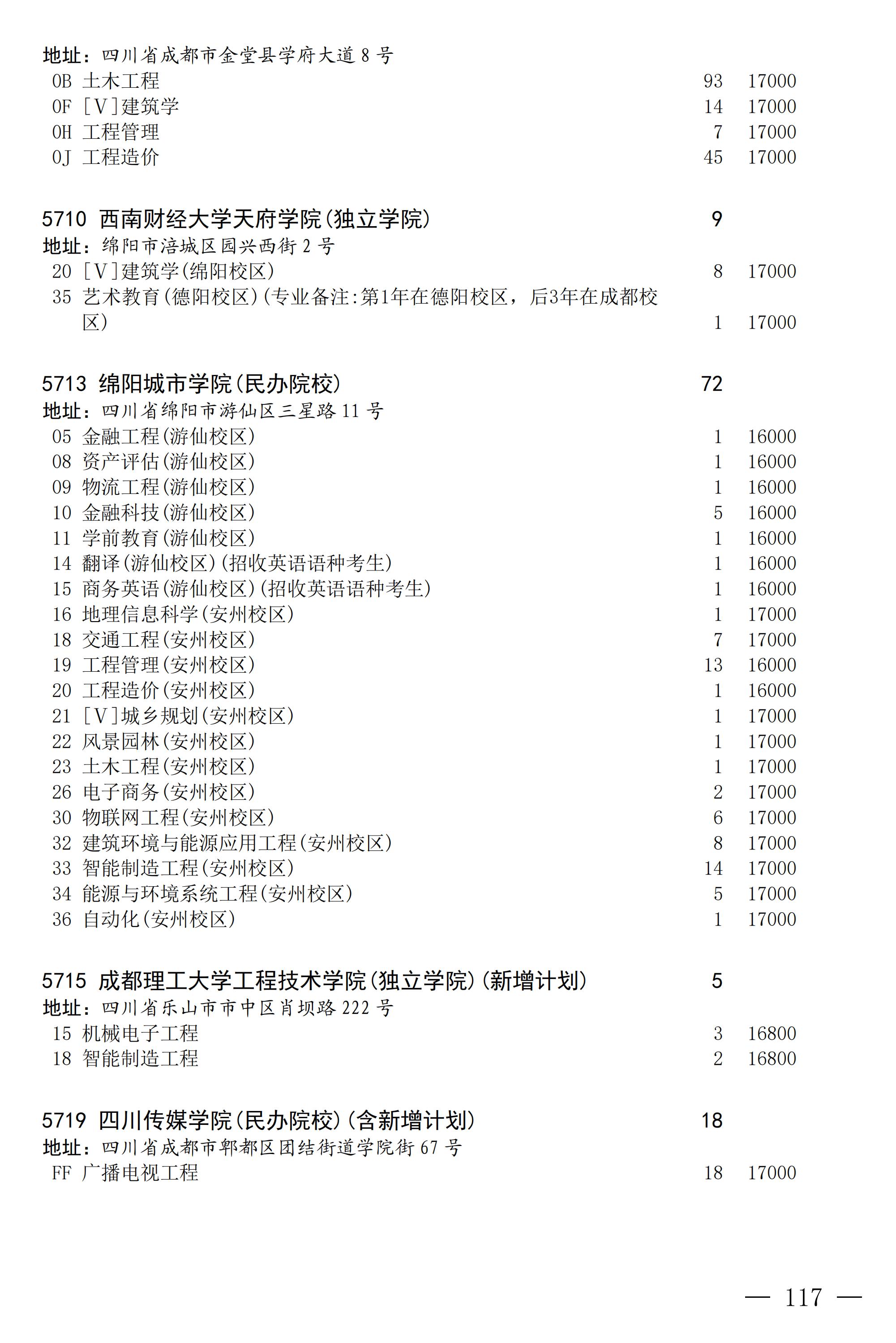 四川省2025年普通高校专升本招生专业及计划
