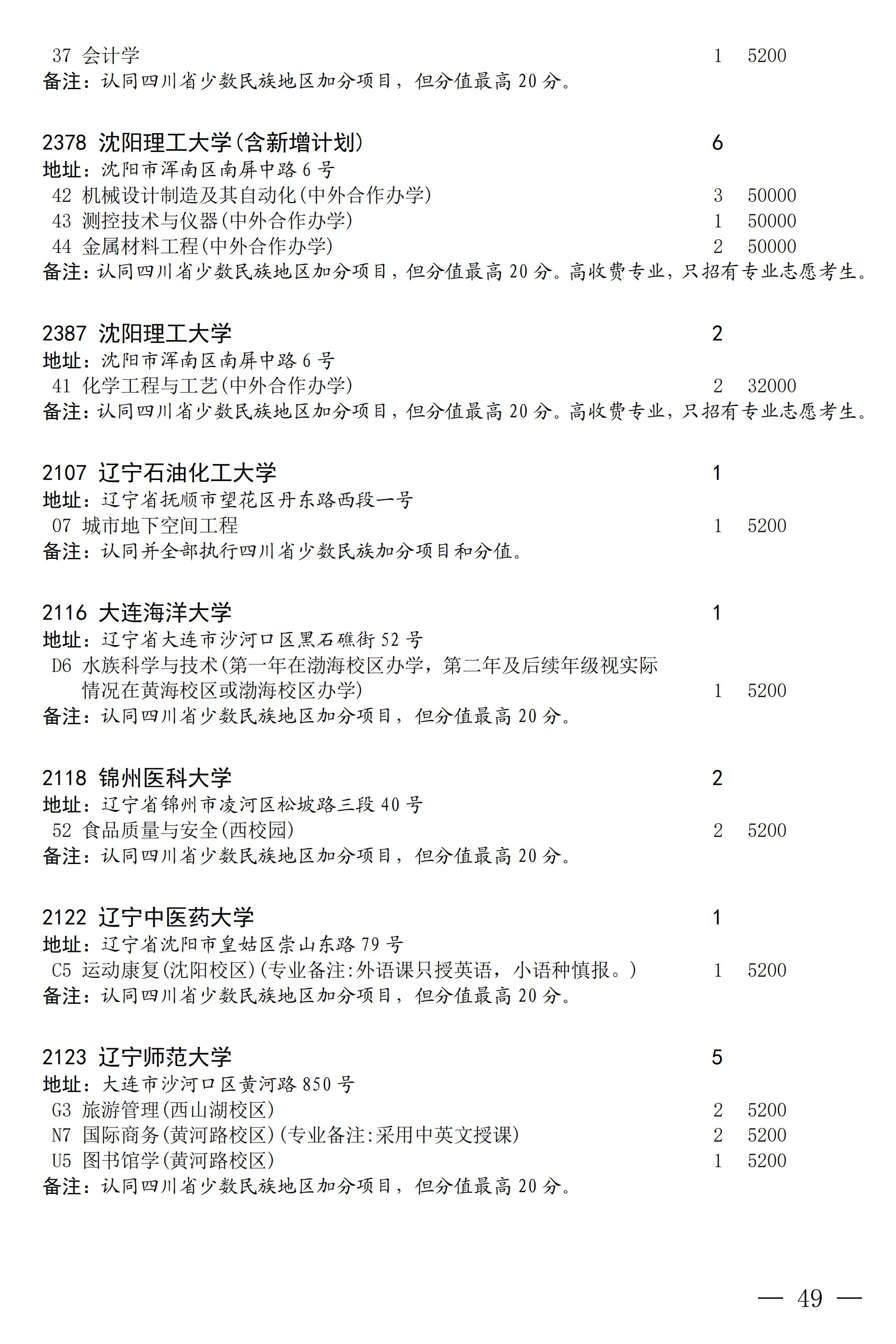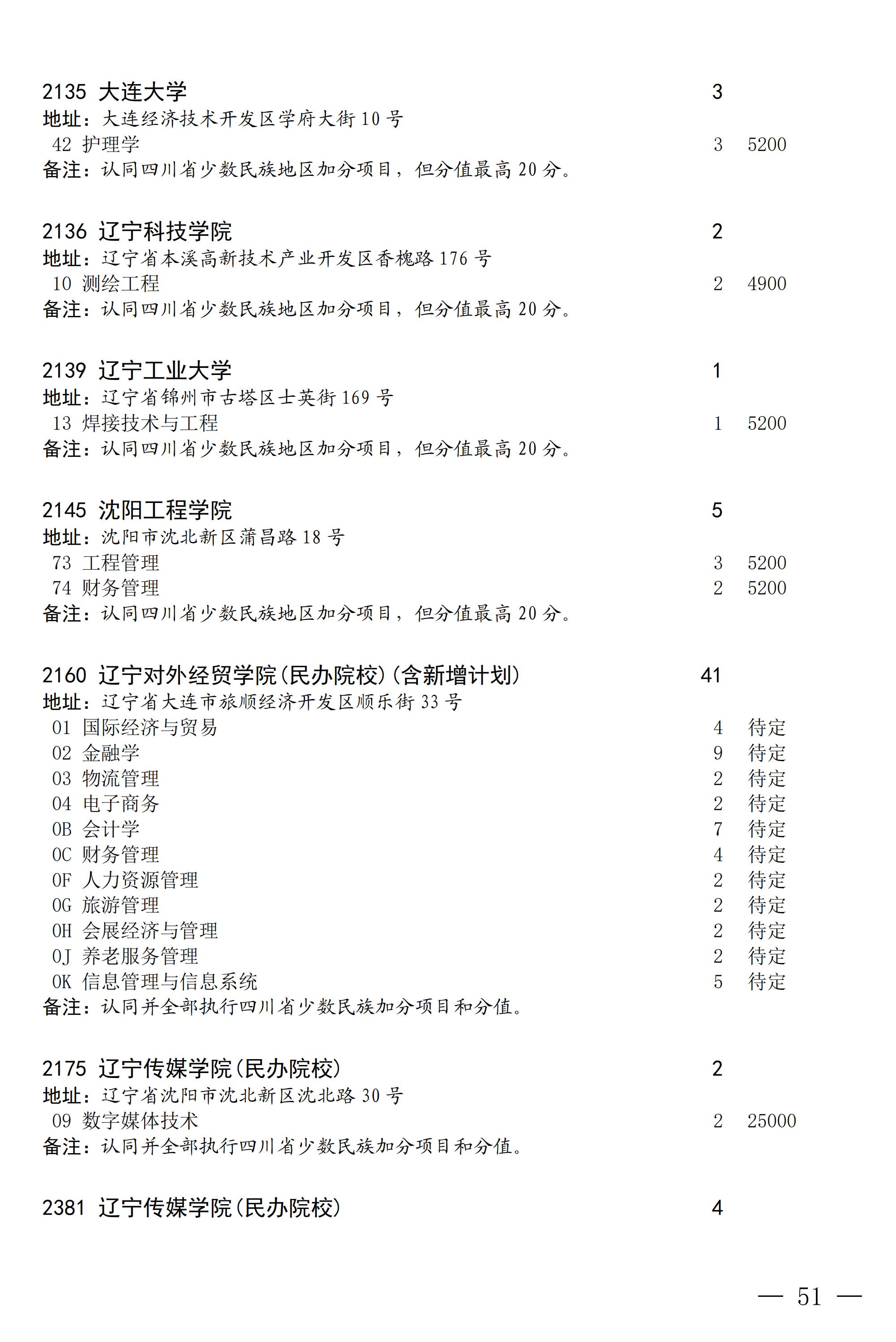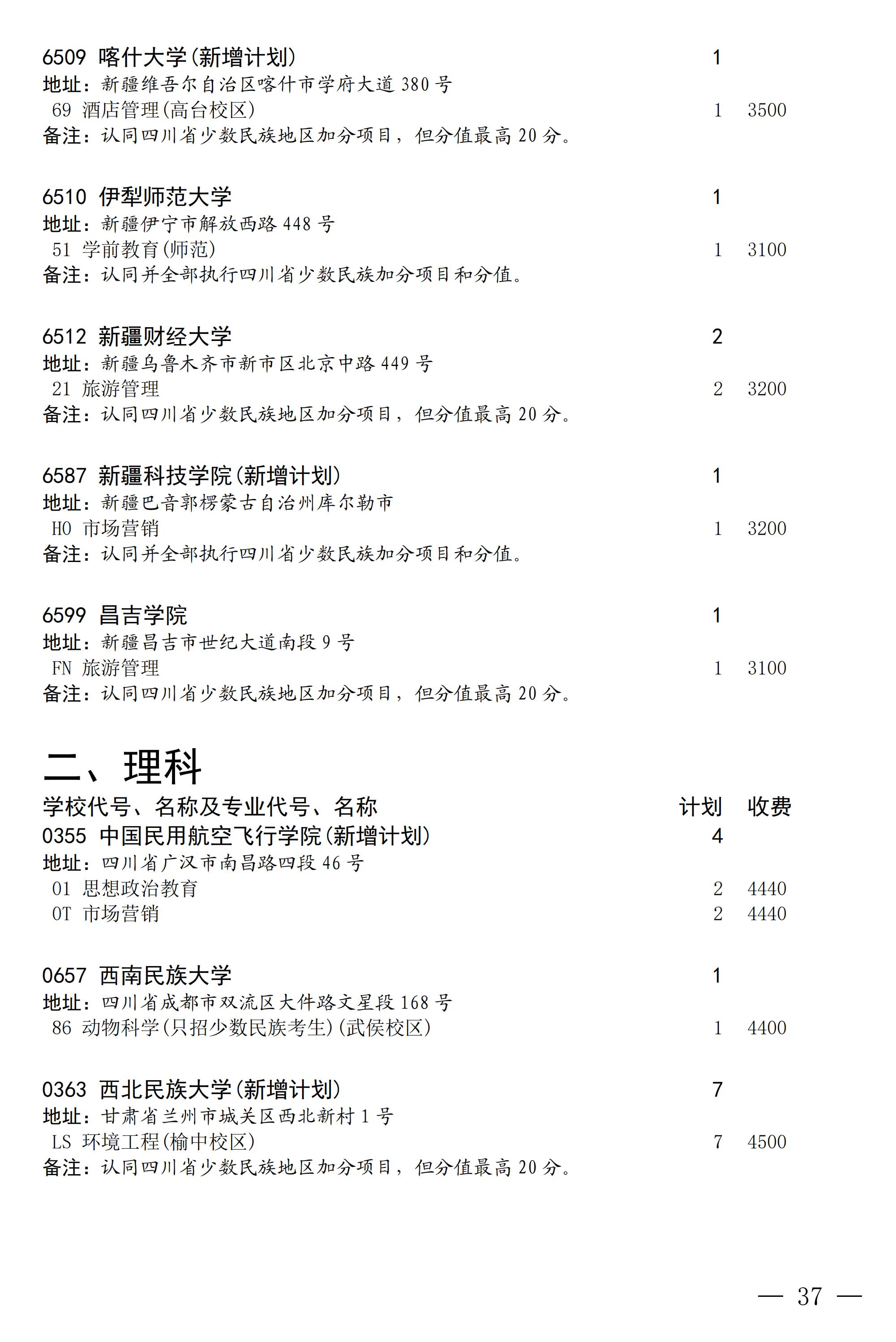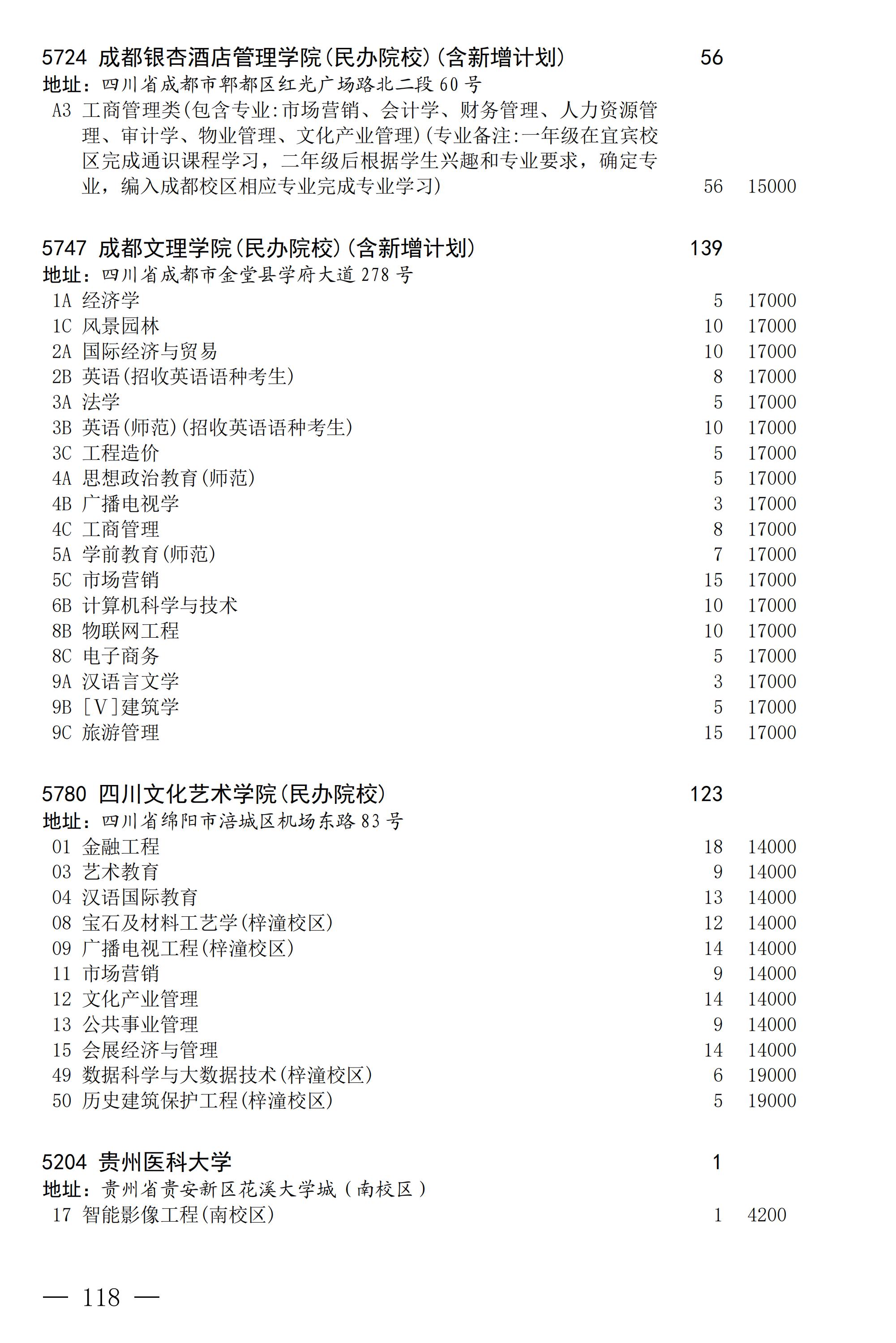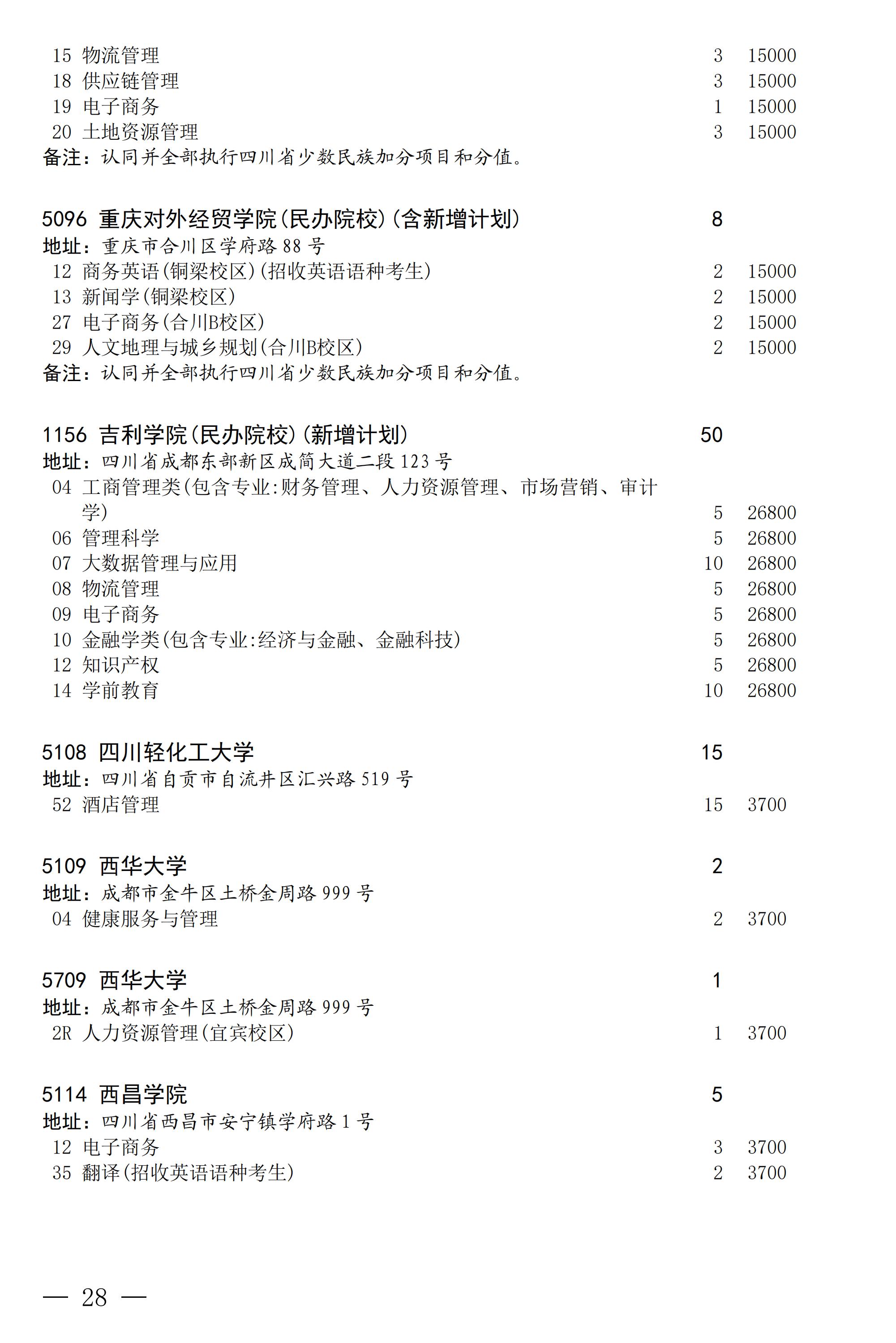 四川省2025年普通高校专升本招生专业及计划