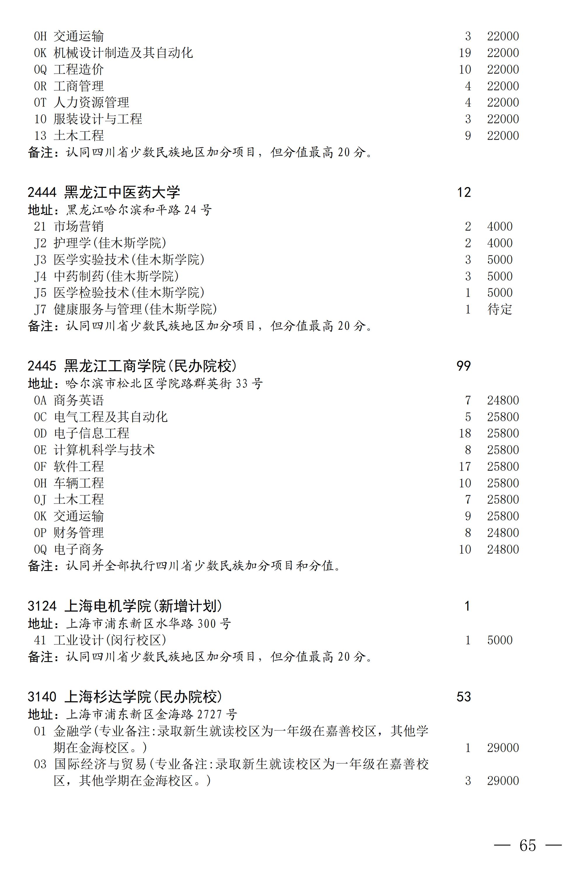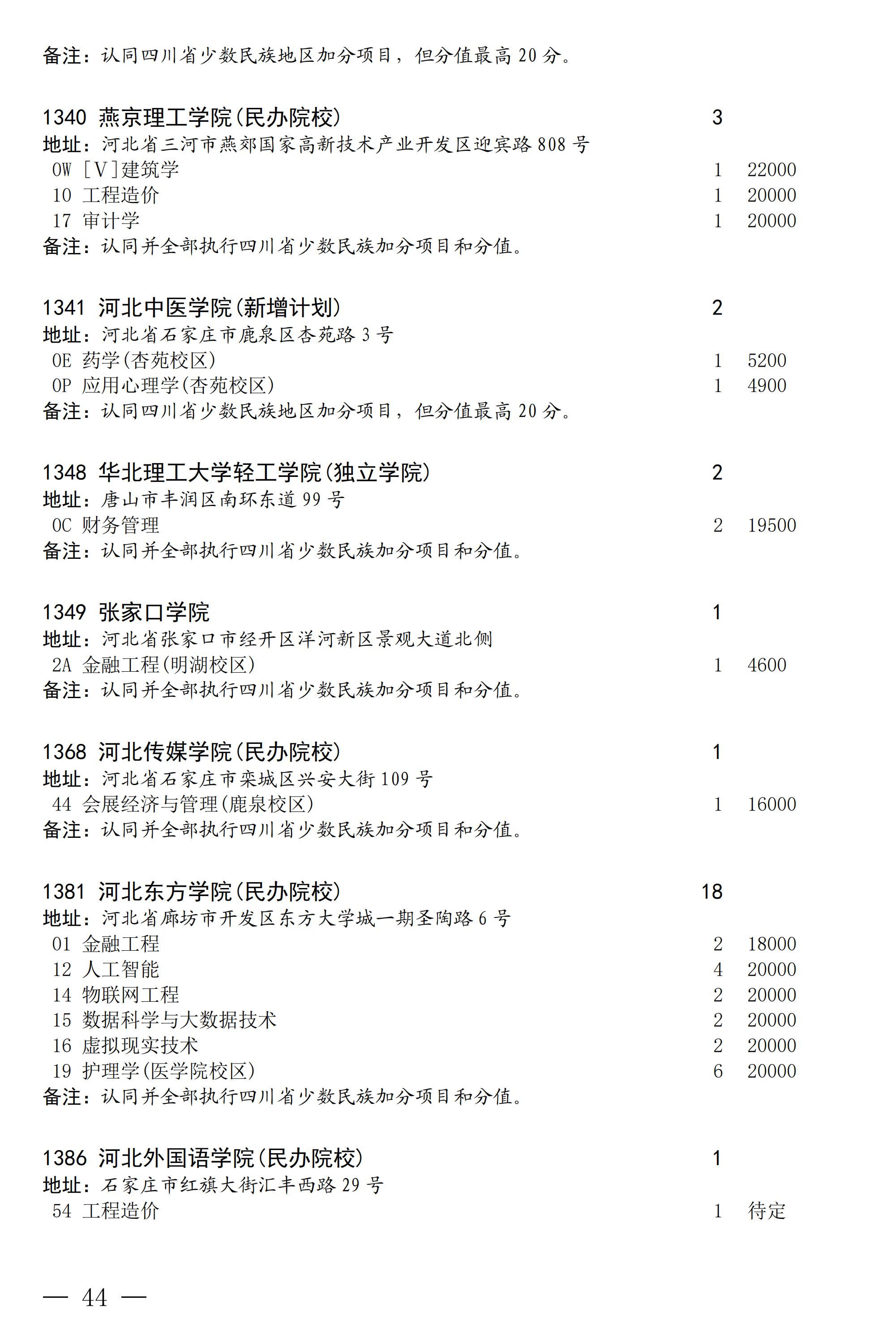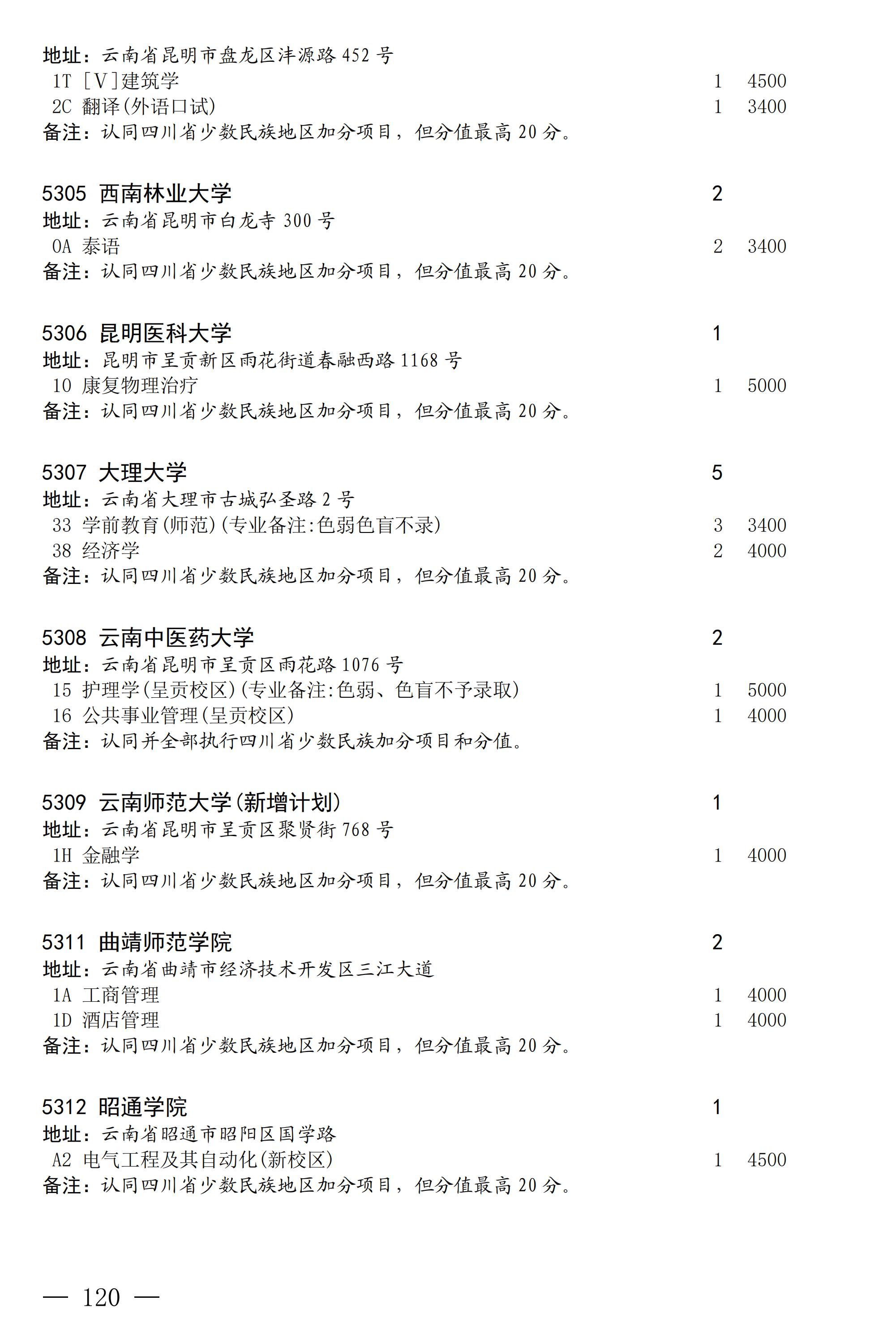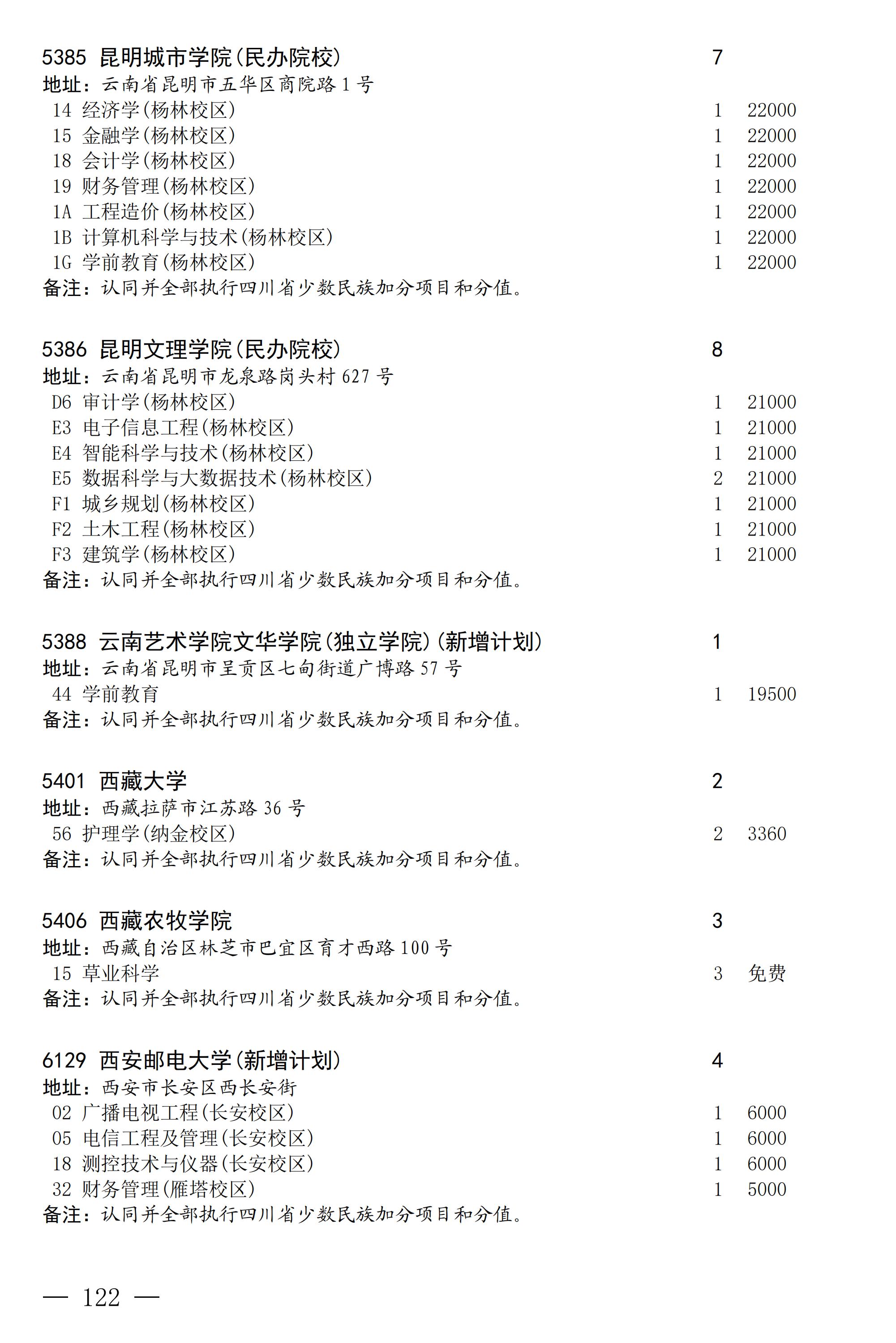 四川省2025年普通高校专升本招生专业及计划