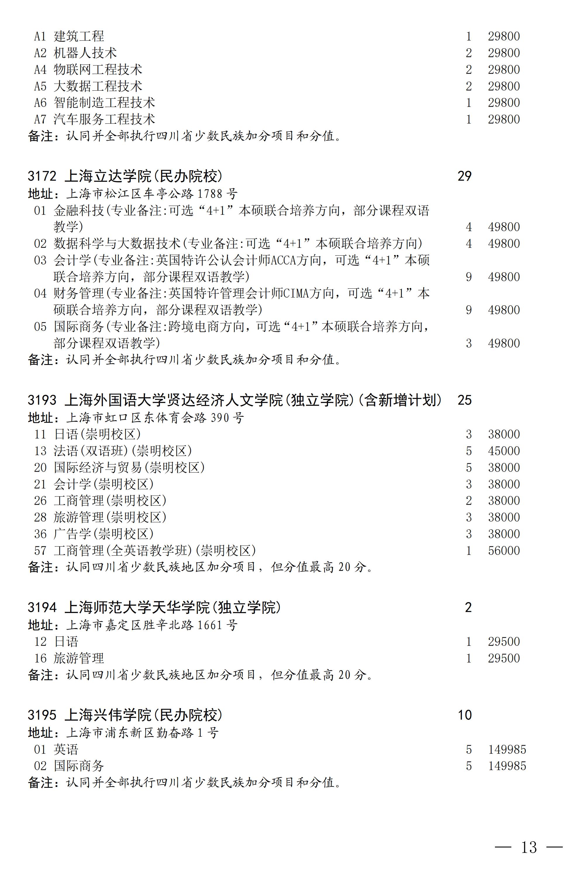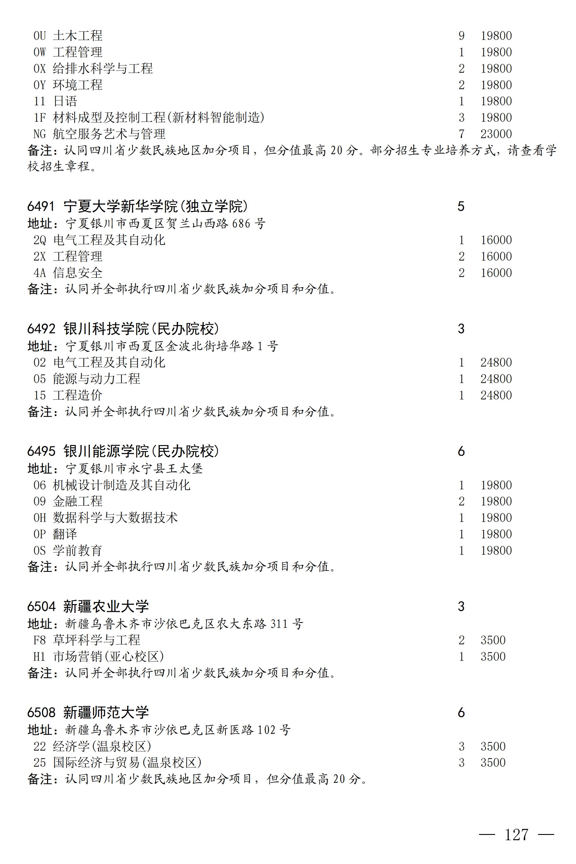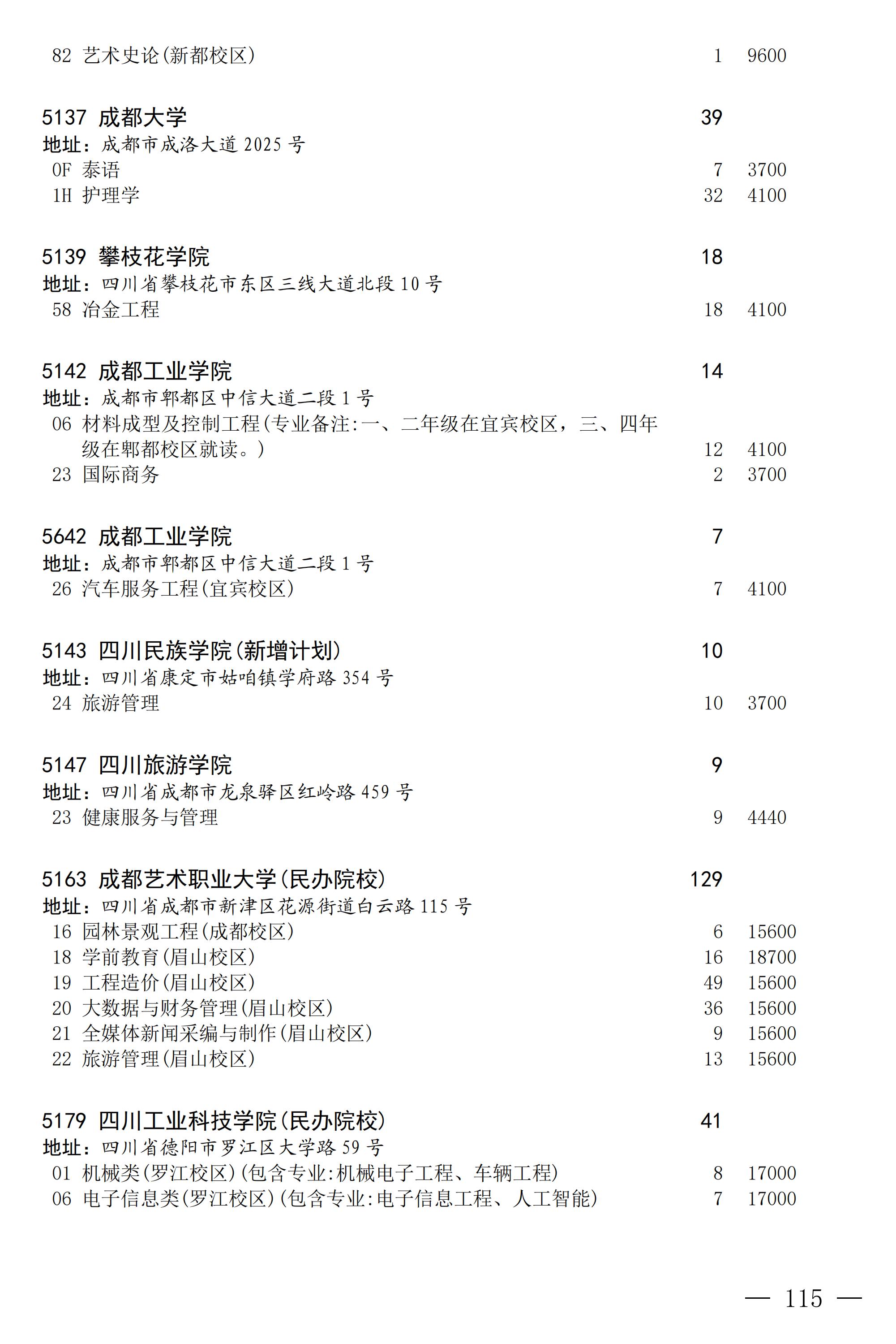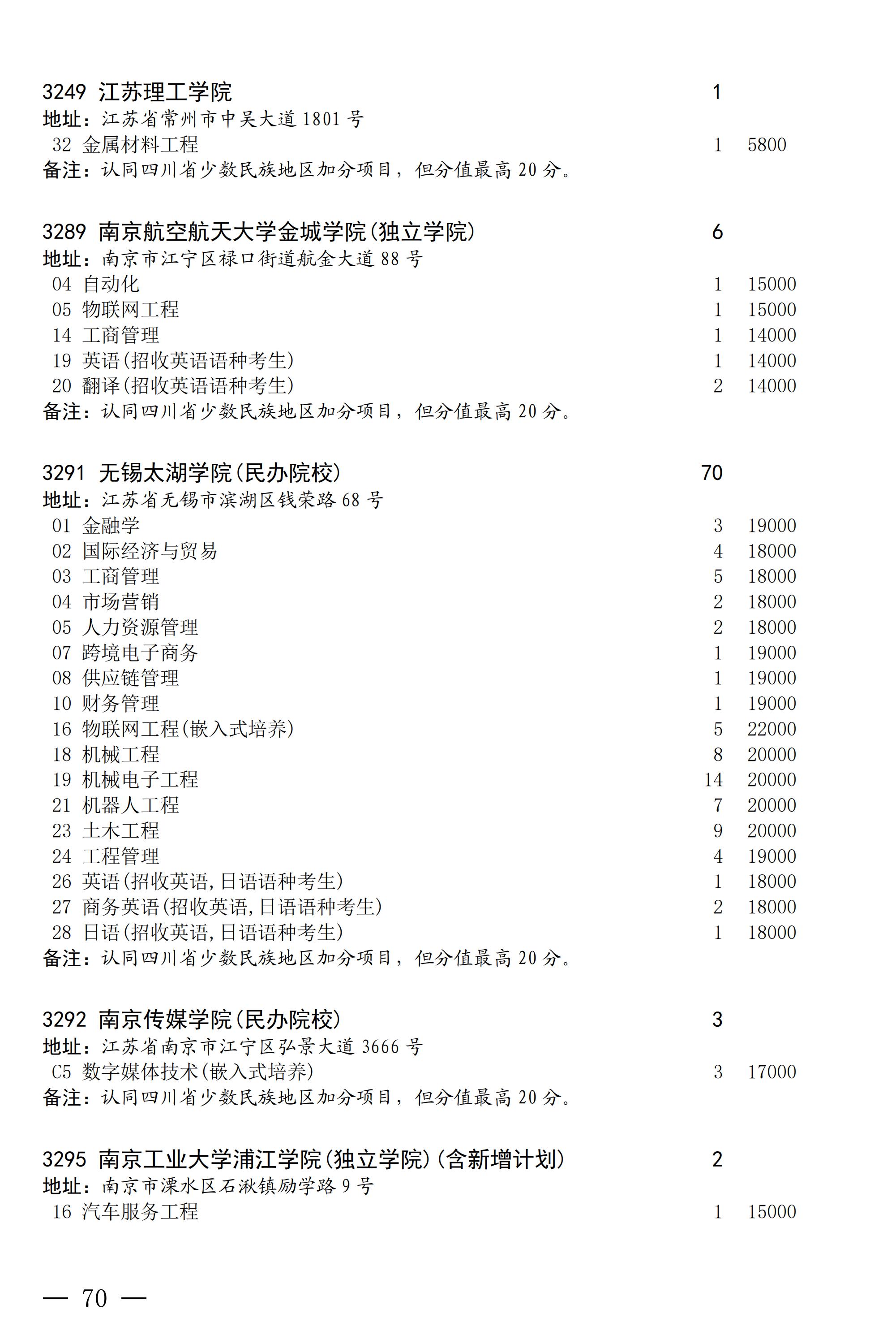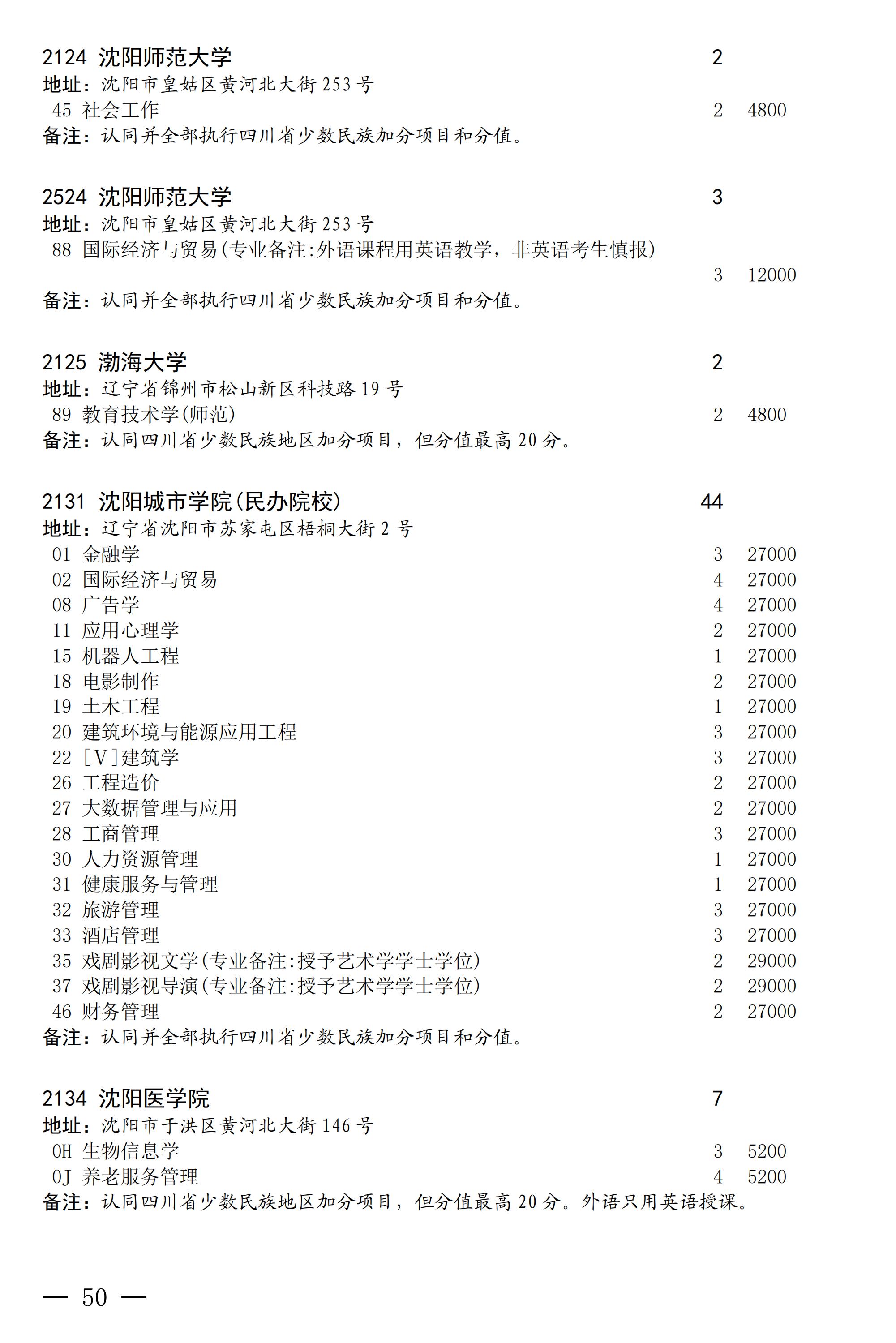 四川省2025年普通高校专升本招生专业及计划