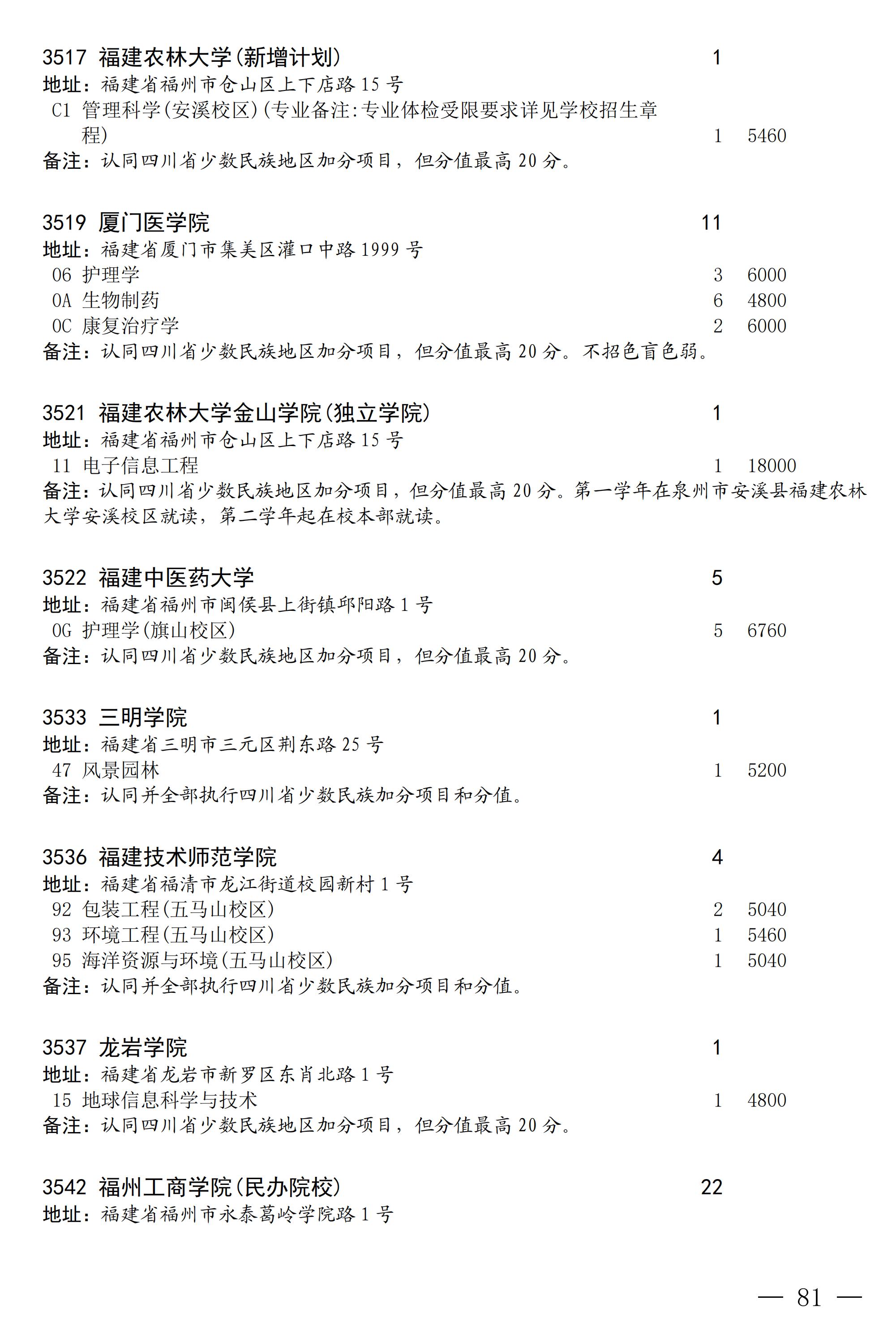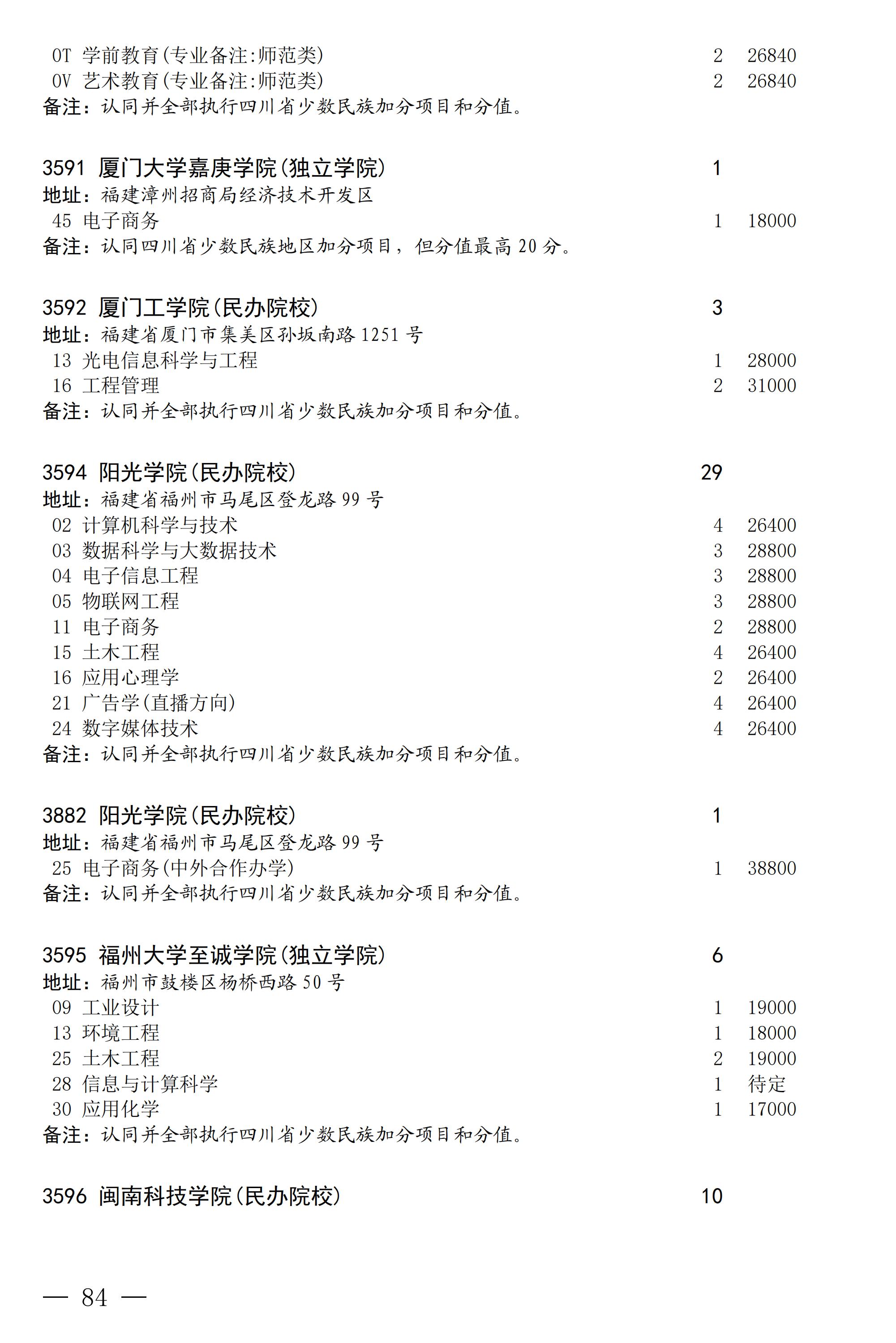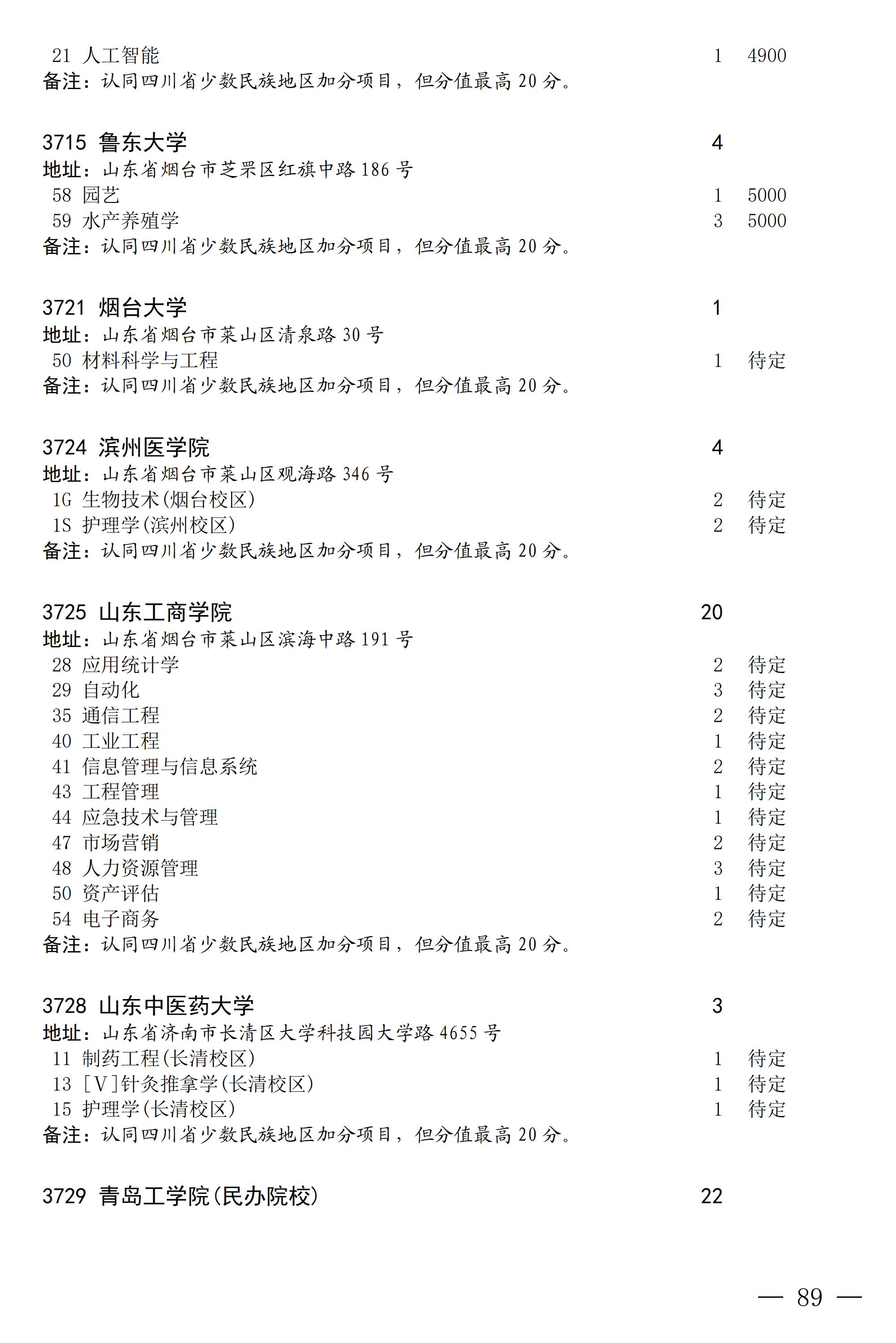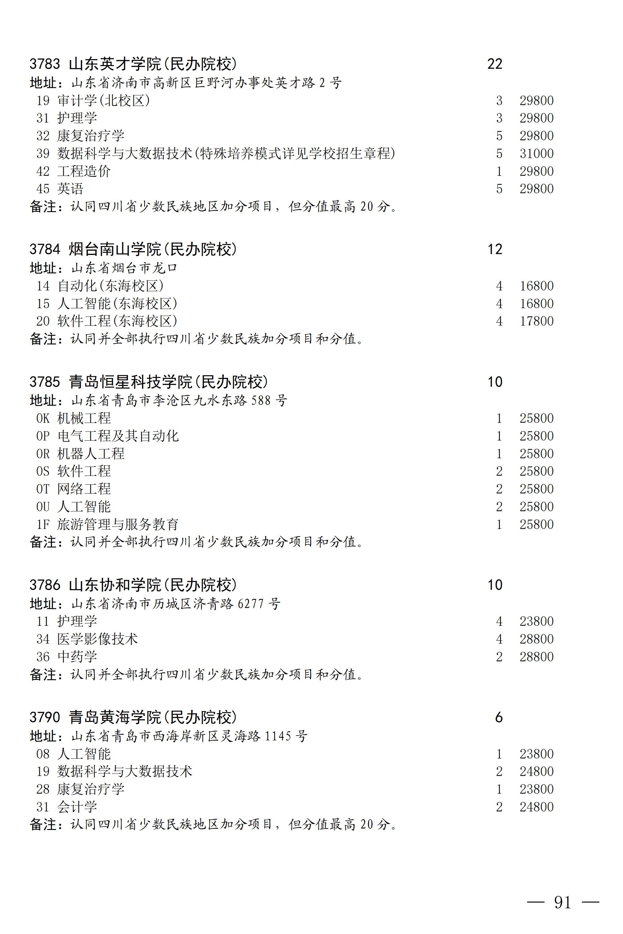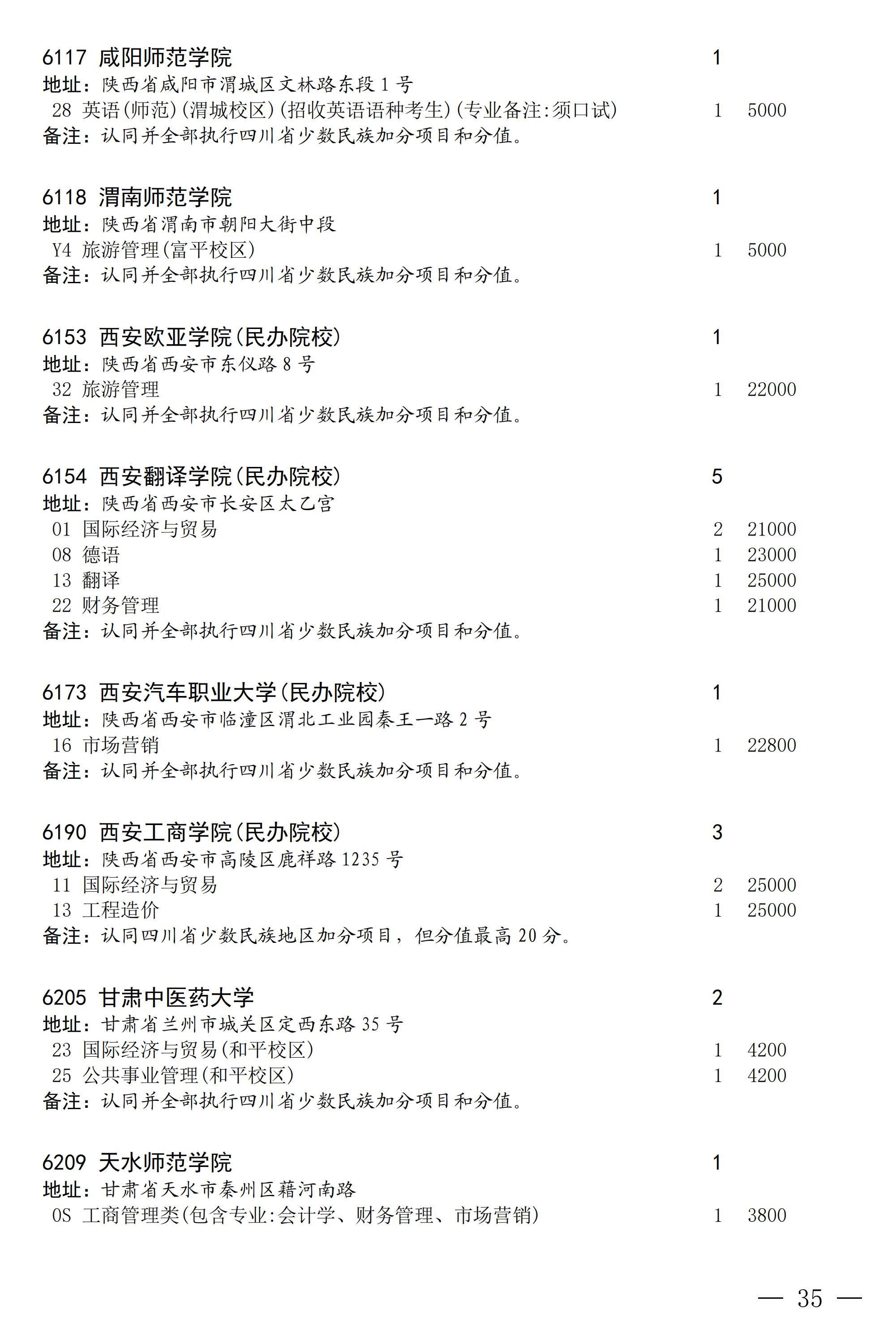 四川省2025年普通高校专升本招生专业及计划