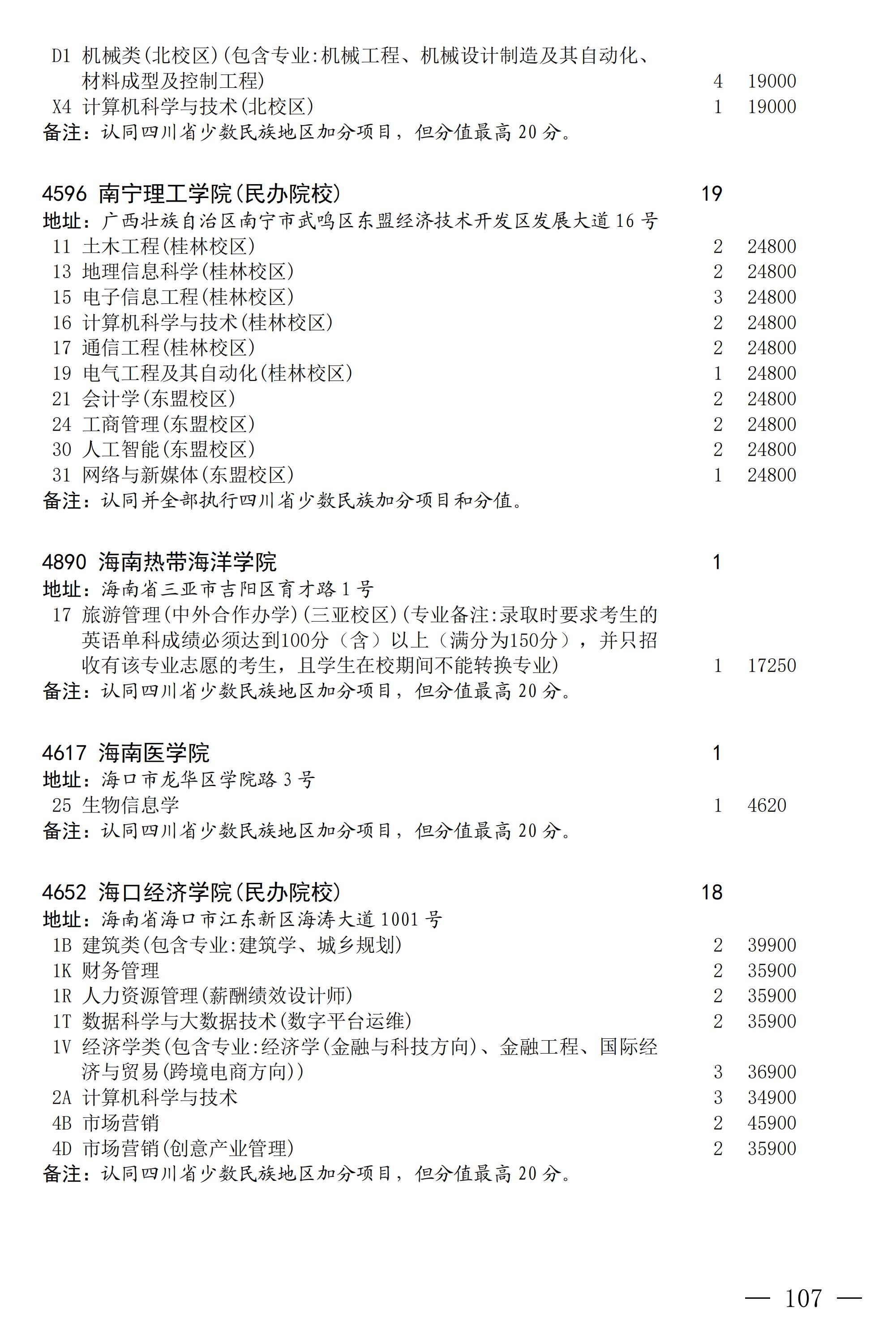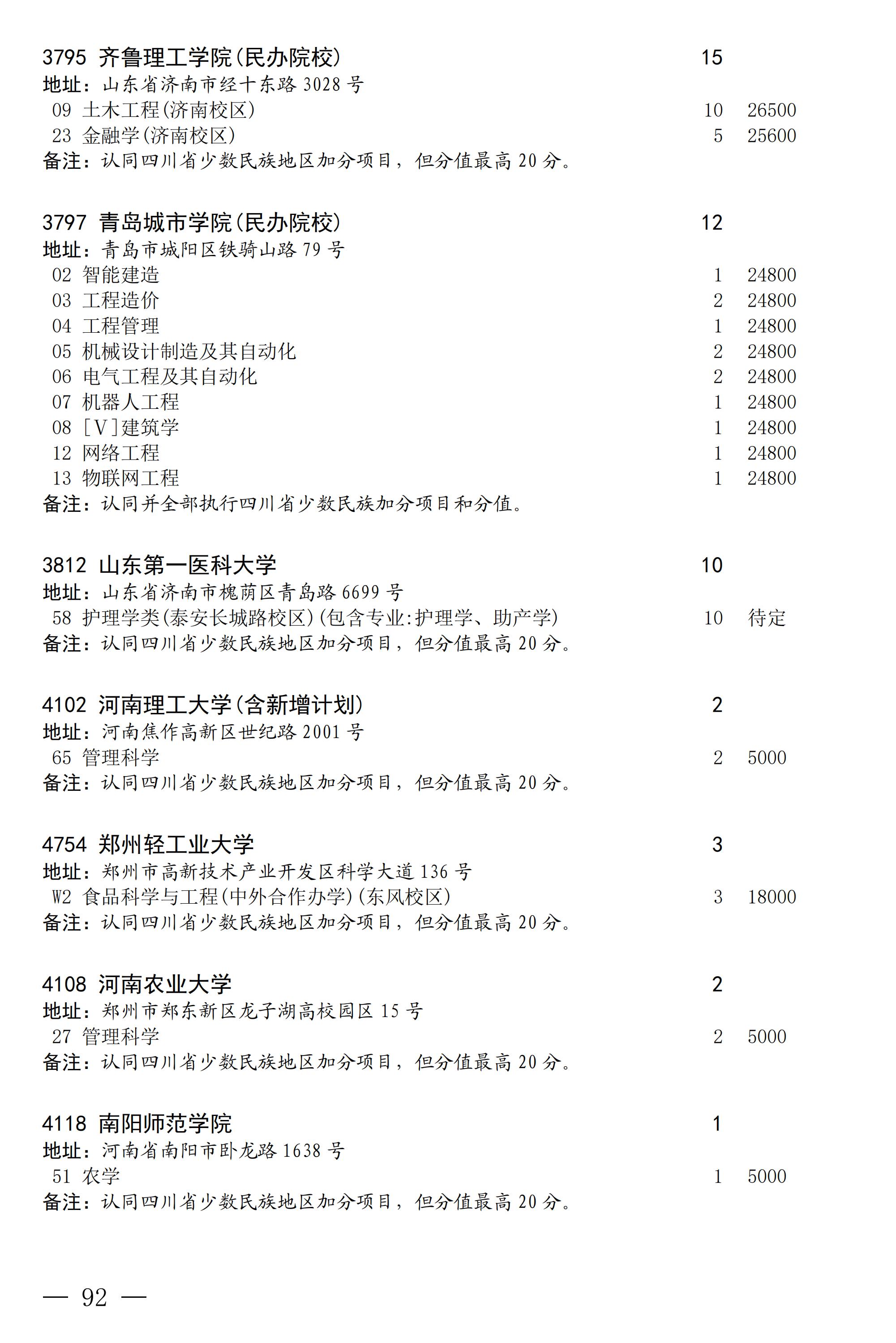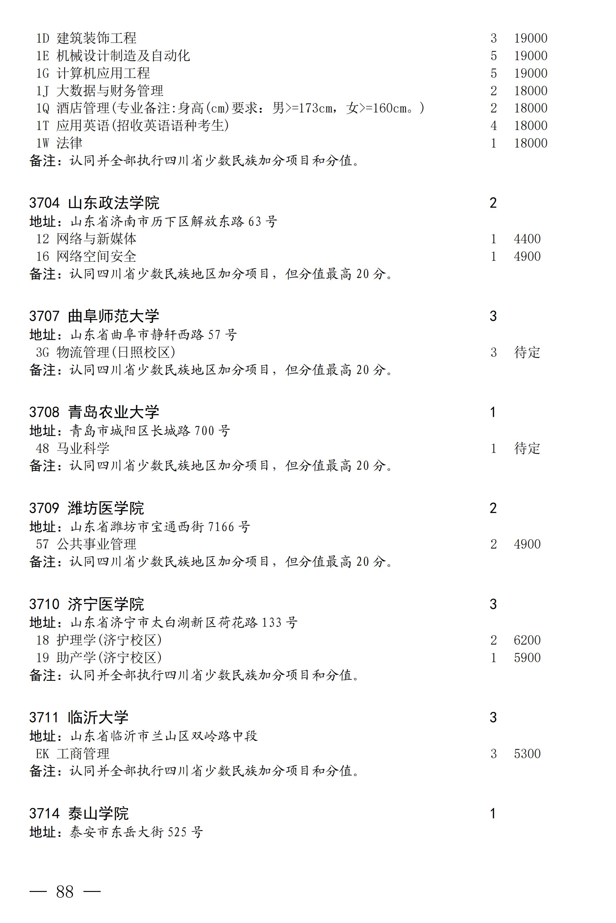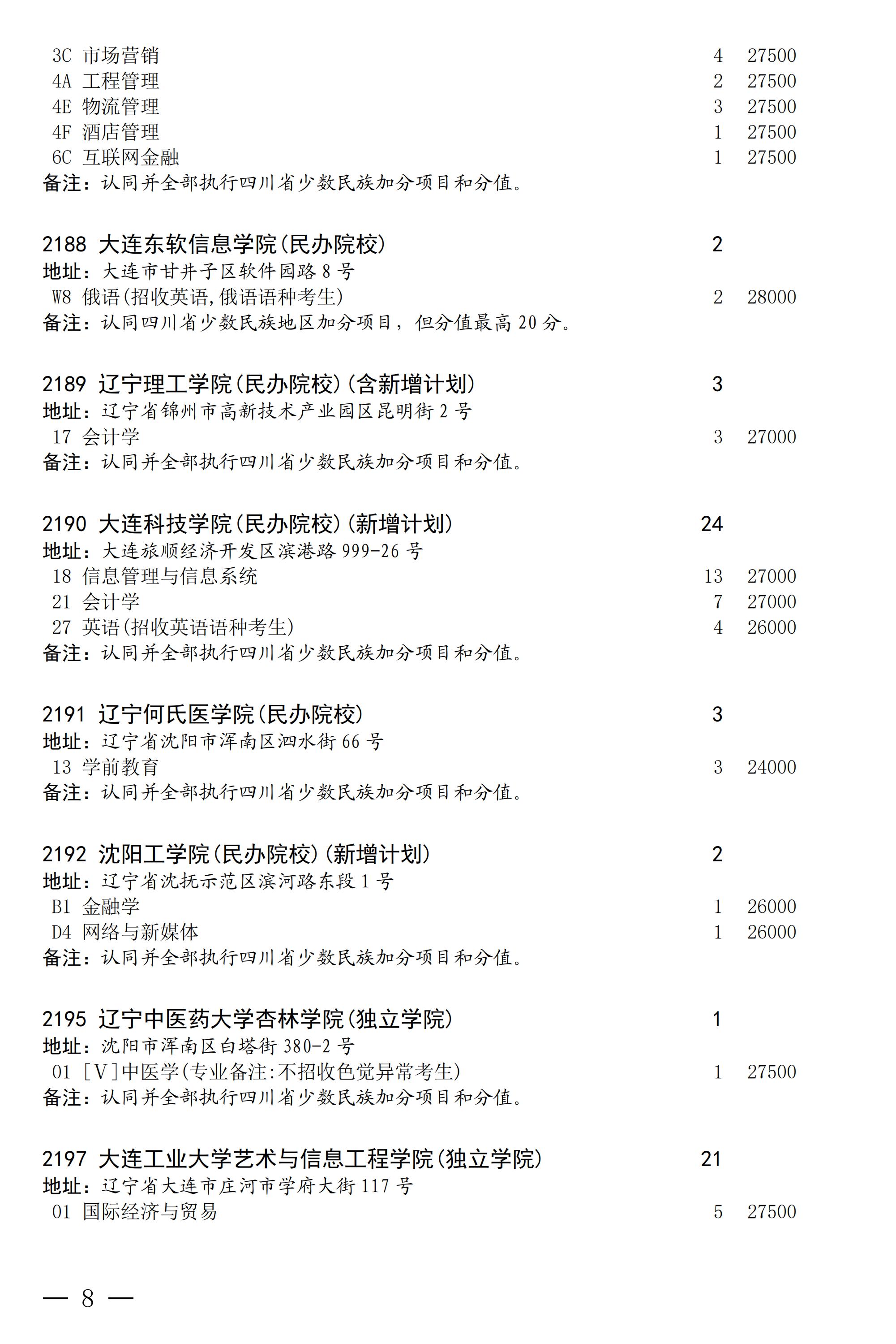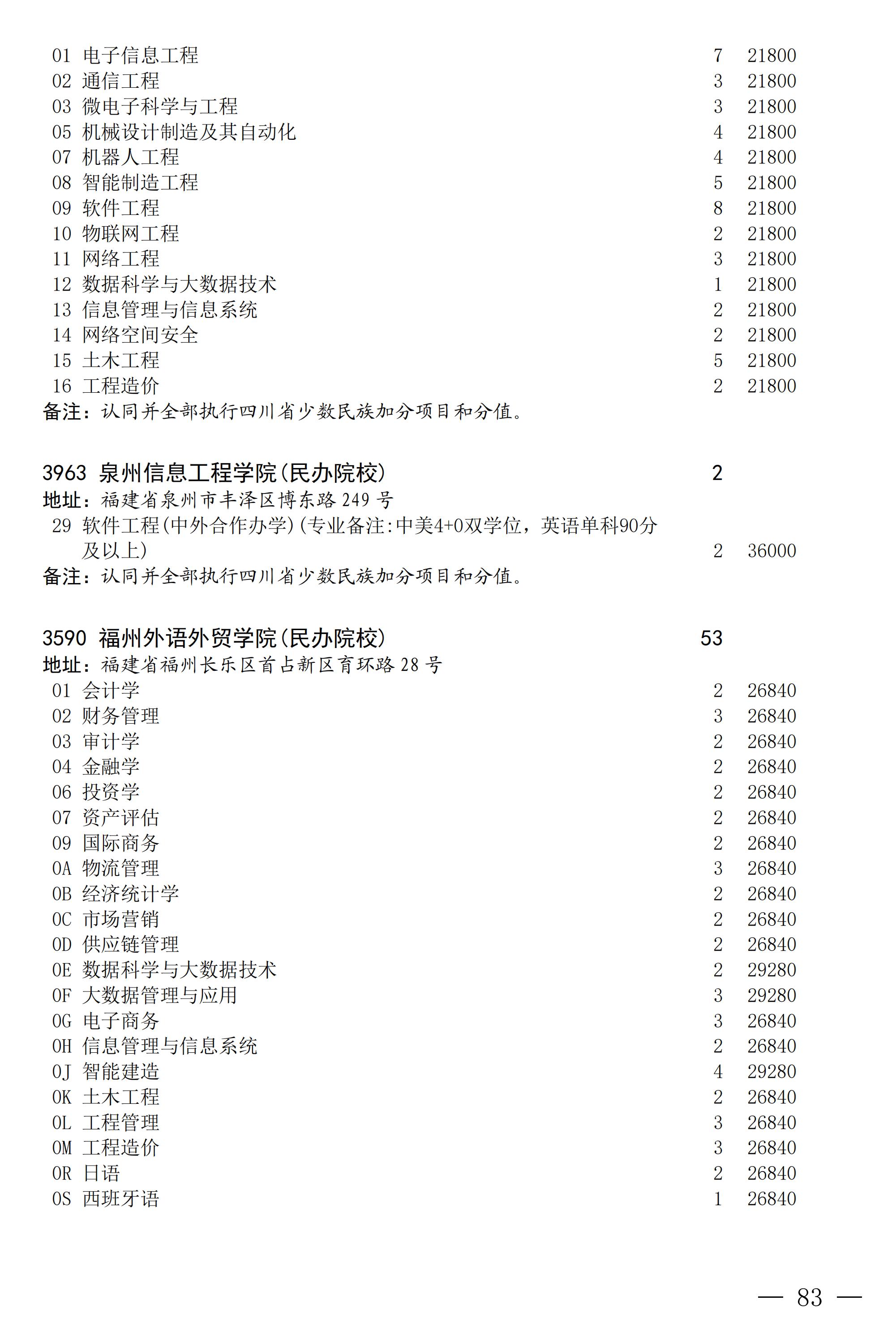 四川省2025年普通高校专升本招生专业及计划