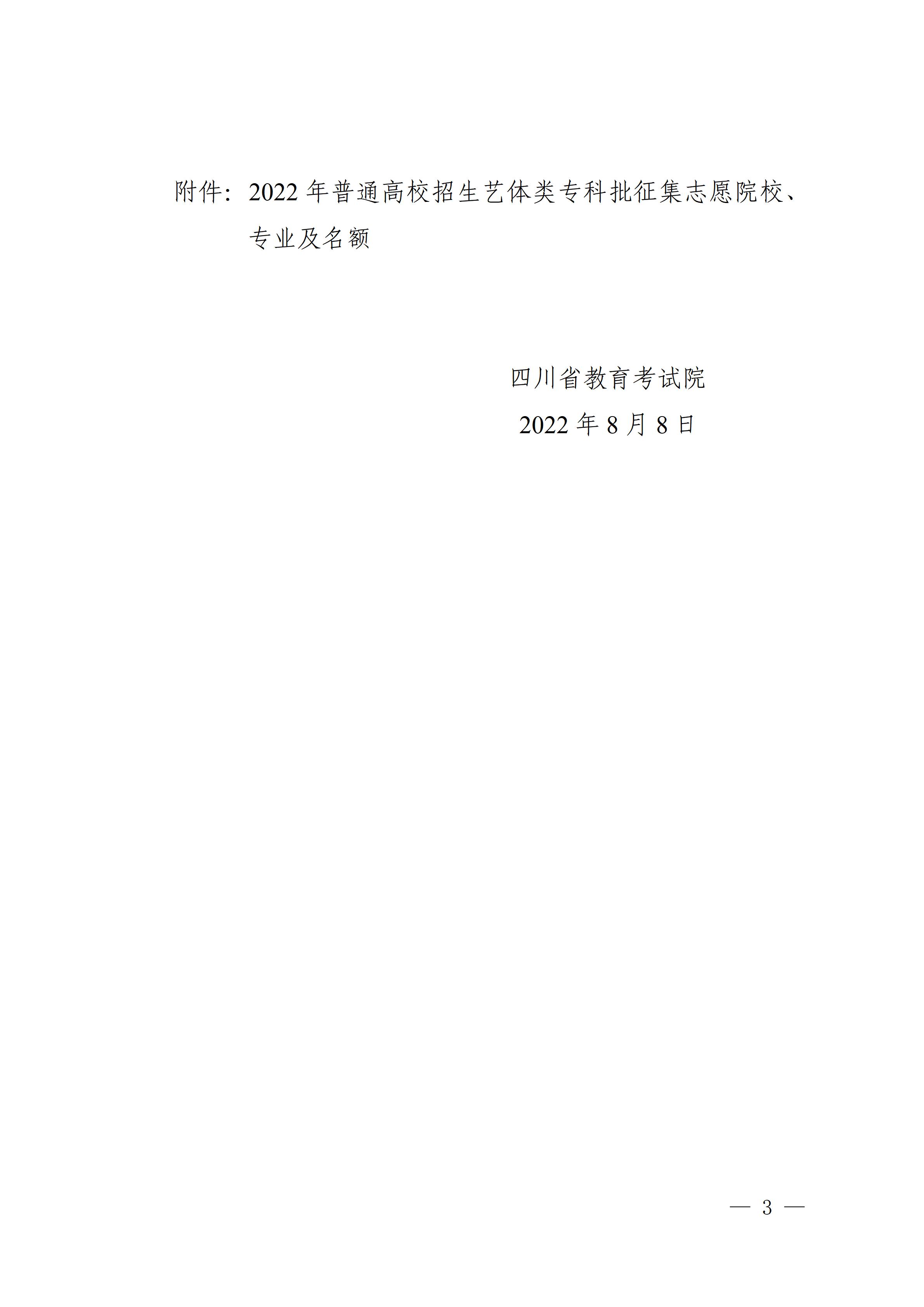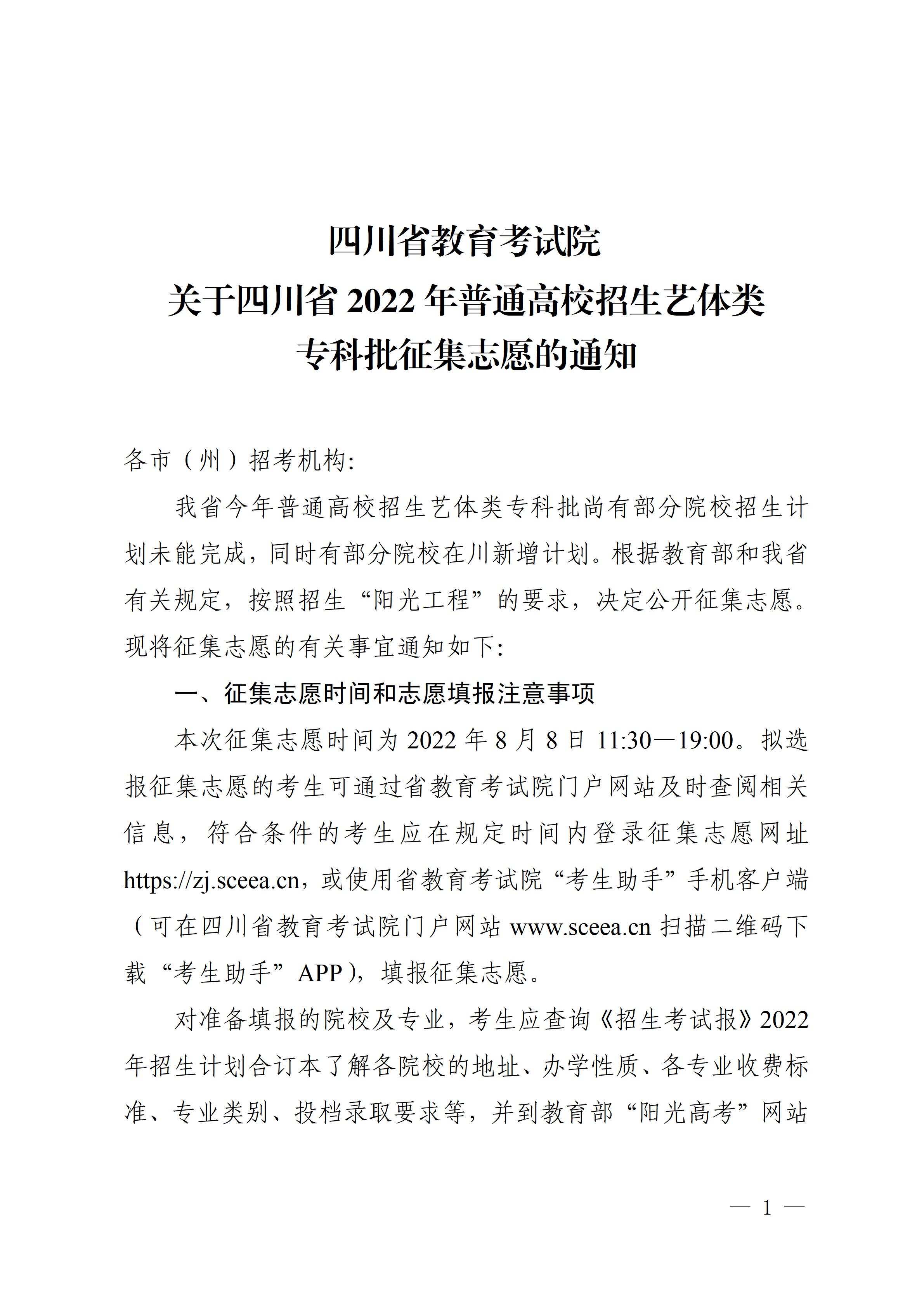 关于四川省2022年普通高校招生艺体类专科批征集志愿的通知