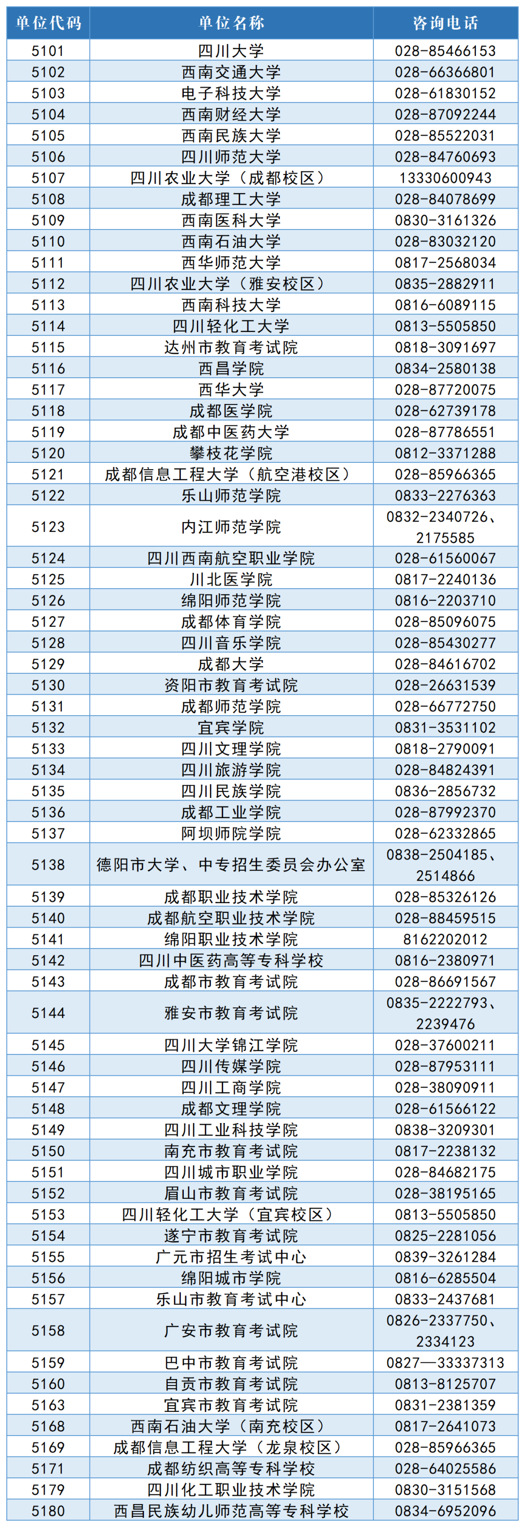 四川省2023年硕士研究生招生考试报考点咨询电话