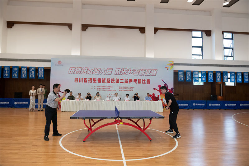 陈朝先指出,正值第31届世界大学生夏季运动会在成都隆重举行,举办本次招考系统乒乓球比赛恰逢其时、意义重大,希望全体运动员增强体魄、健康生活,凝聚奋进力量,弘扬拼搏精神,不断开创全省教育必威官方登录首页网站工作新局面,书写中国式现代化四川招考新篇章。