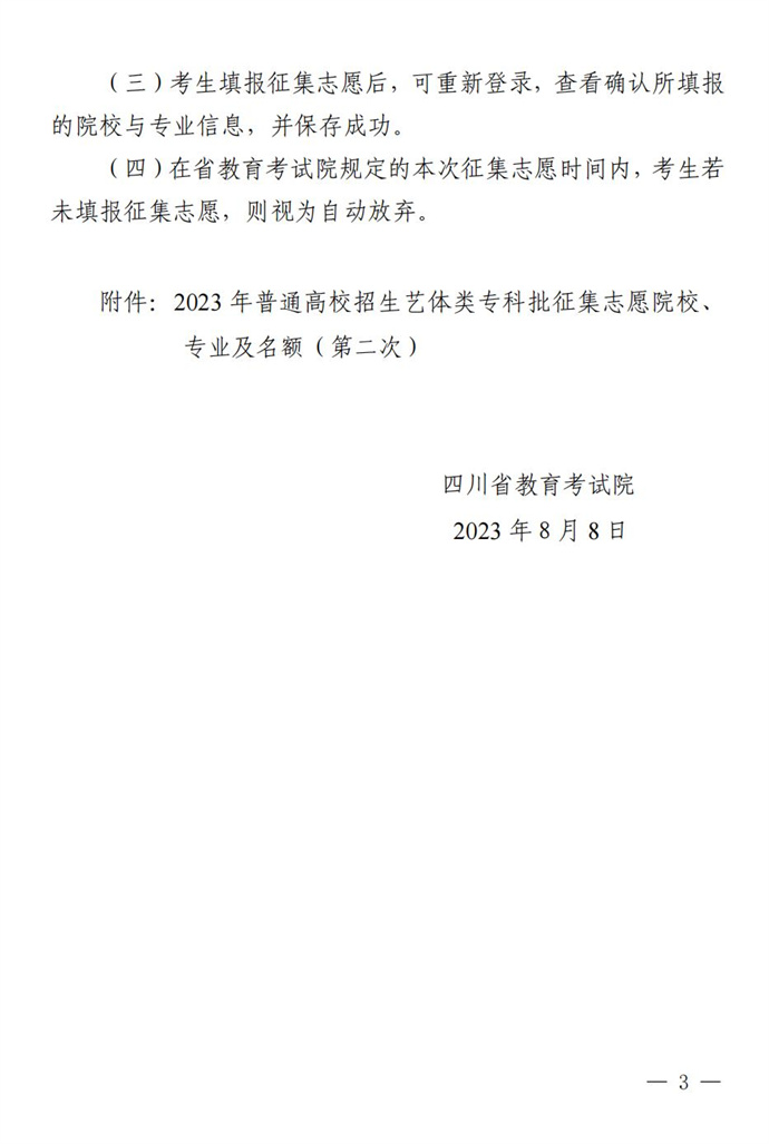 关于四川省2023年普通高校招生艺术体育类专科批第二次征集志愿的通知