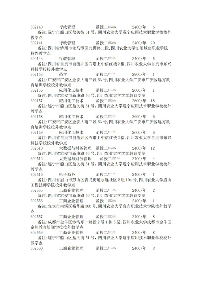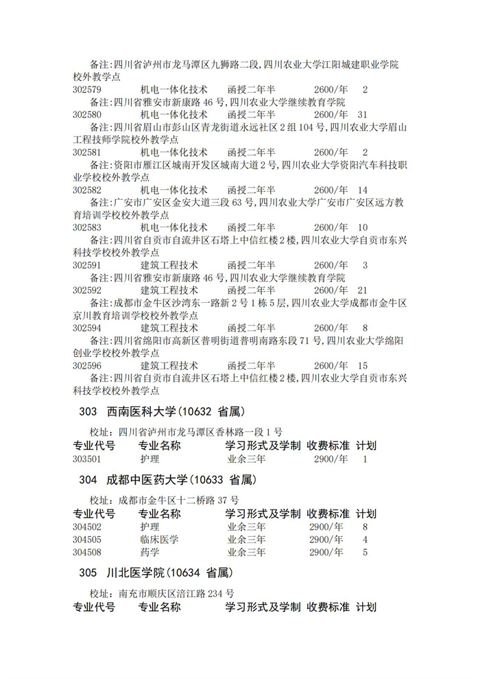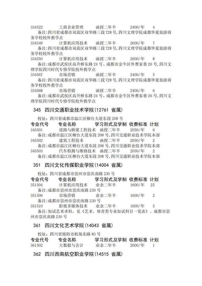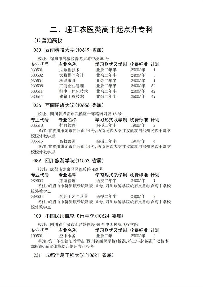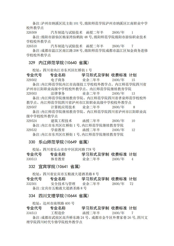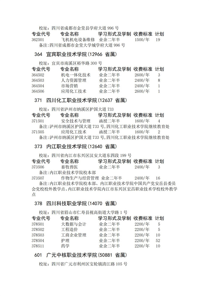四川省2023年成人高校招生录取征集志愿的院校、专业及名额