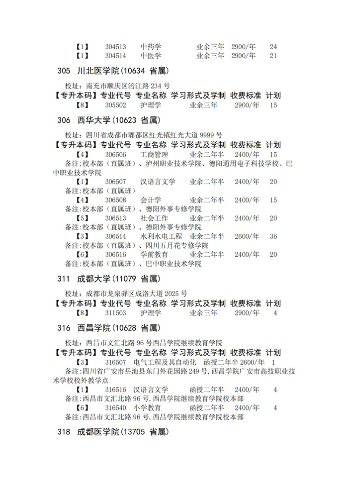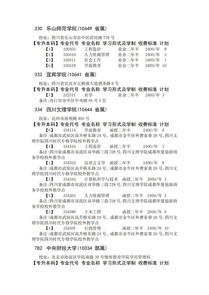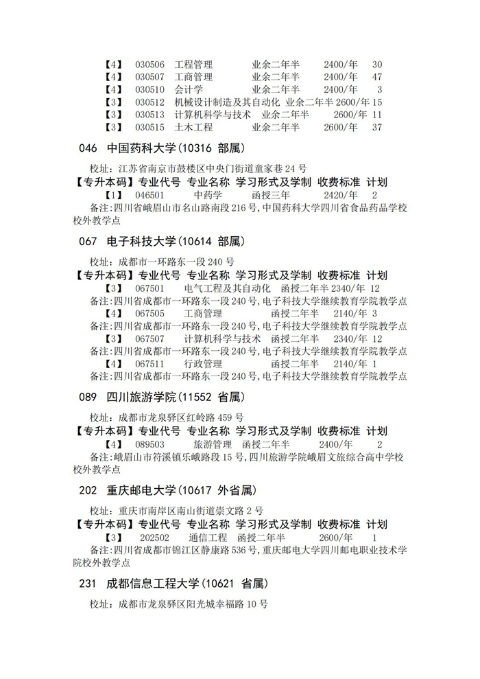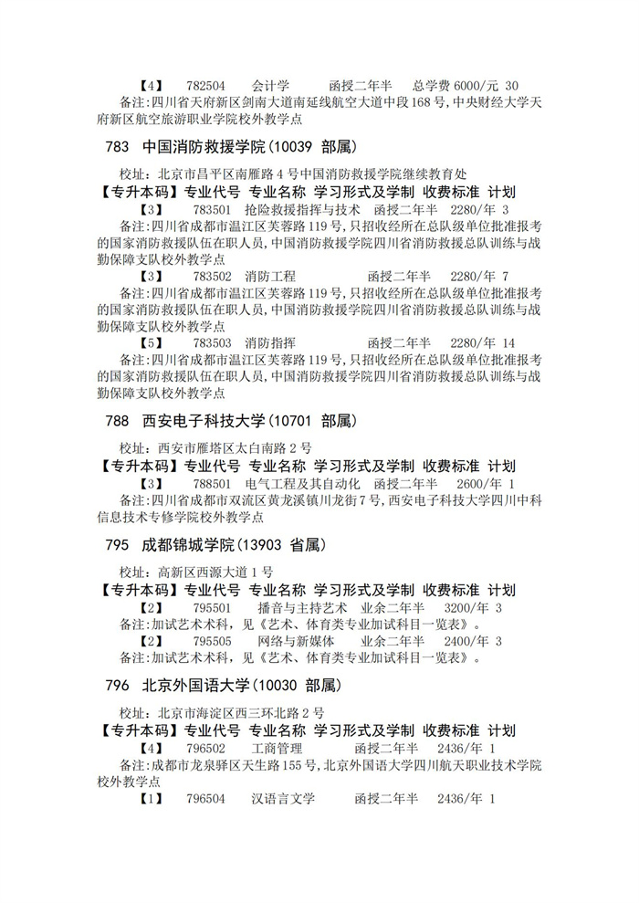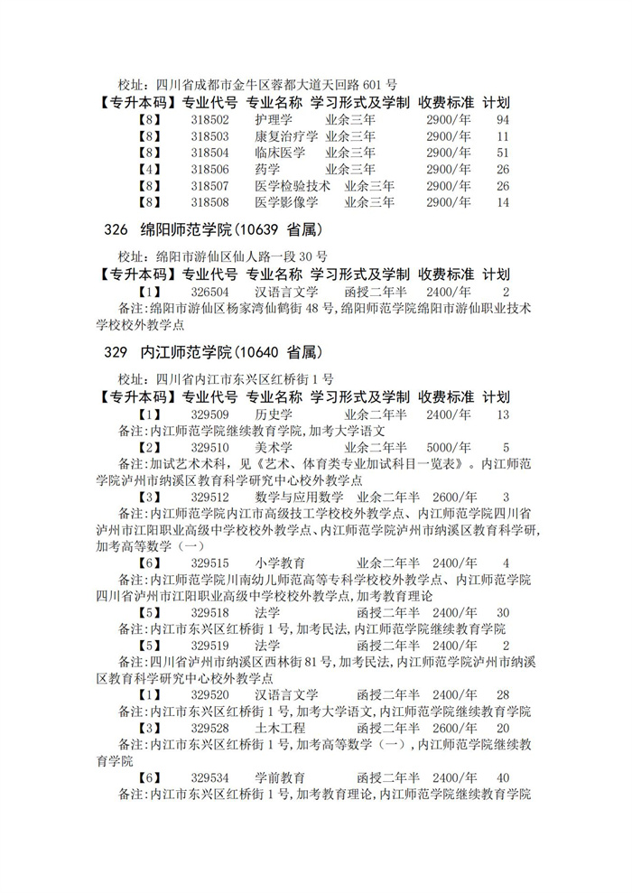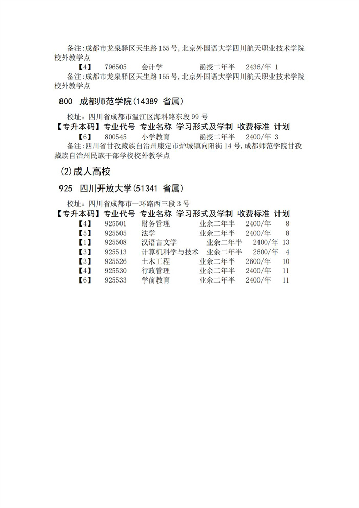 四川省2023年成人高校招生录取征集志愿的院校、专业及名额