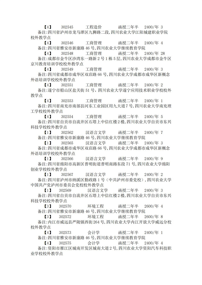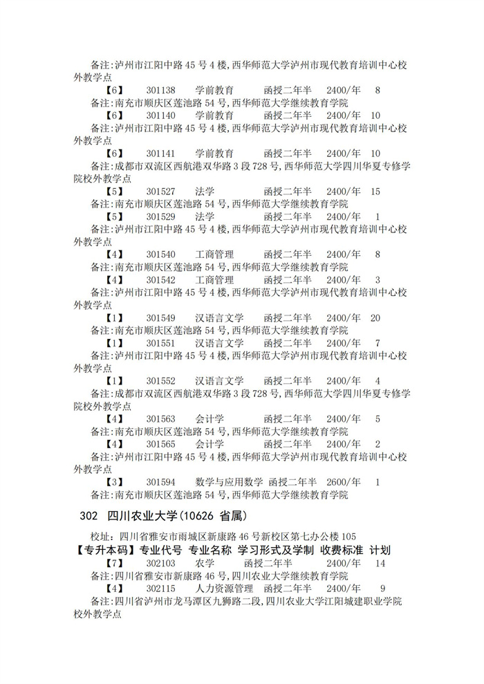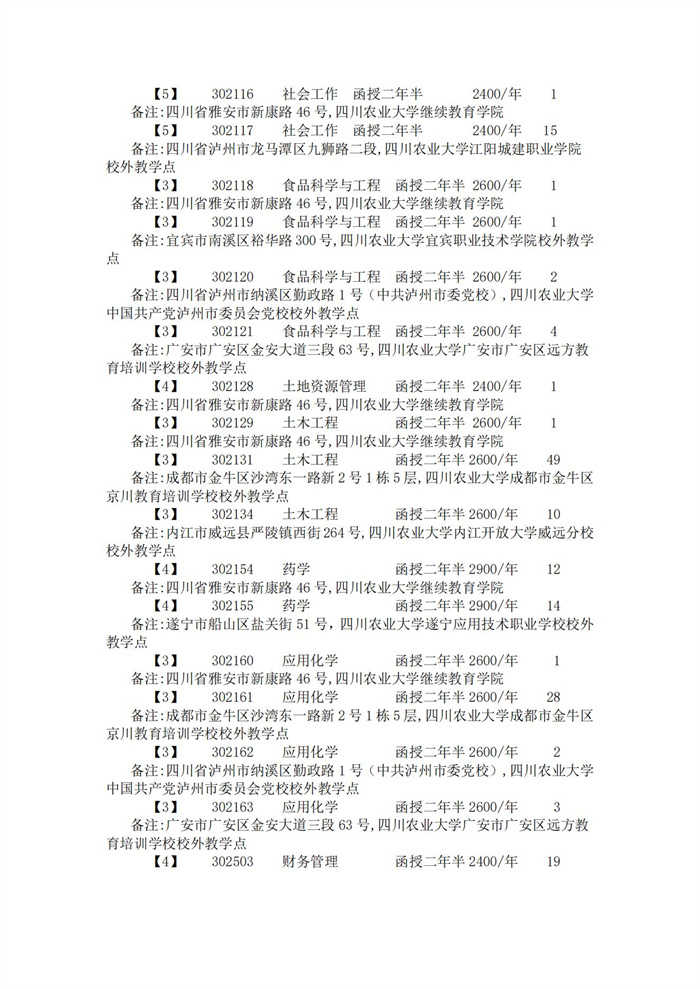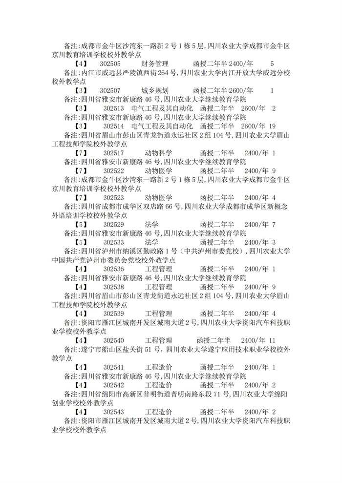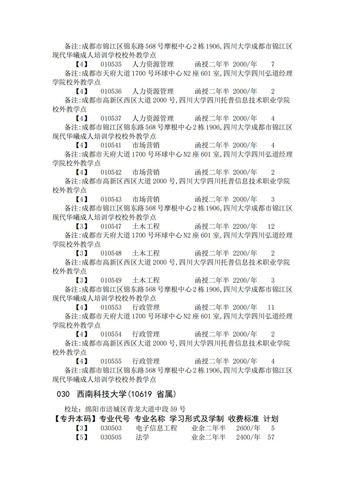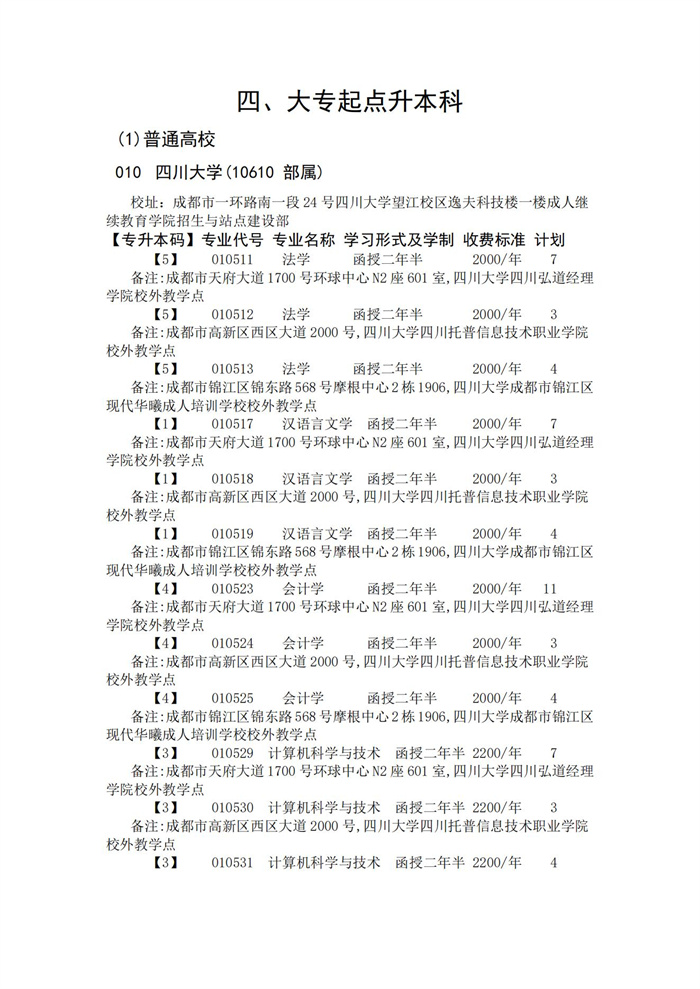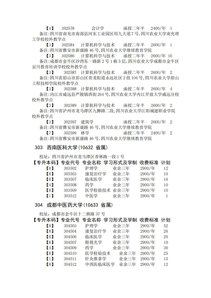 四川省2023年成人高校招生录取征集志愿的院校、专业及名额