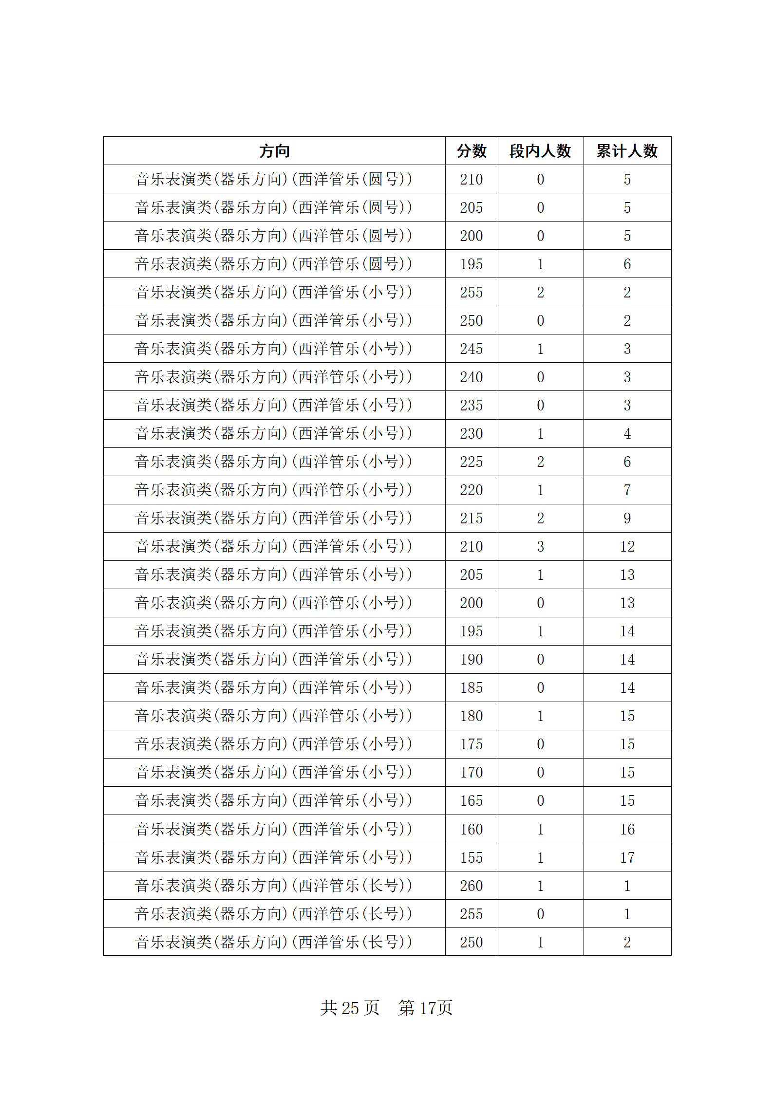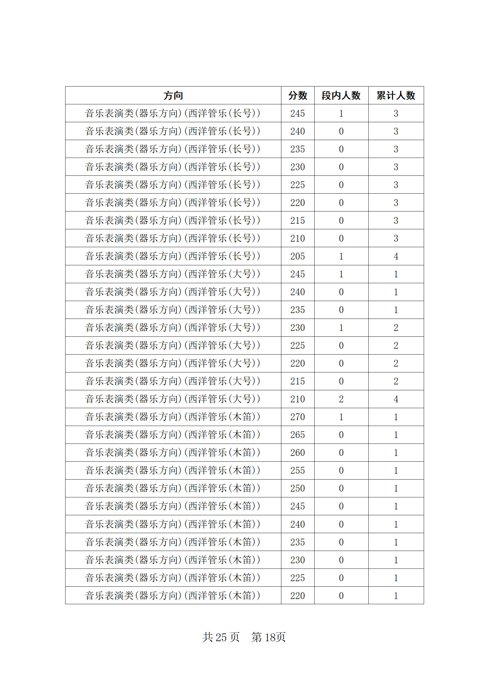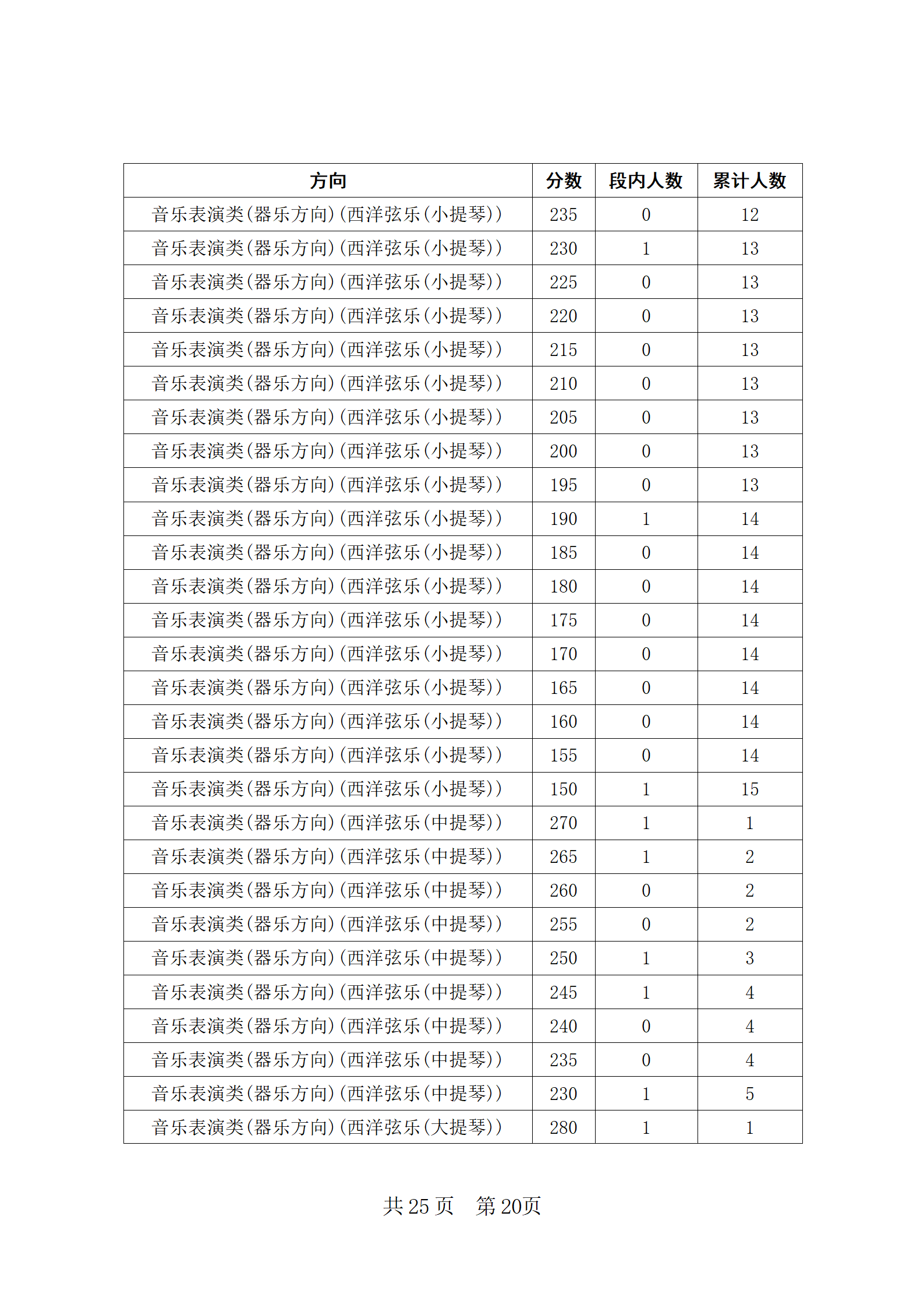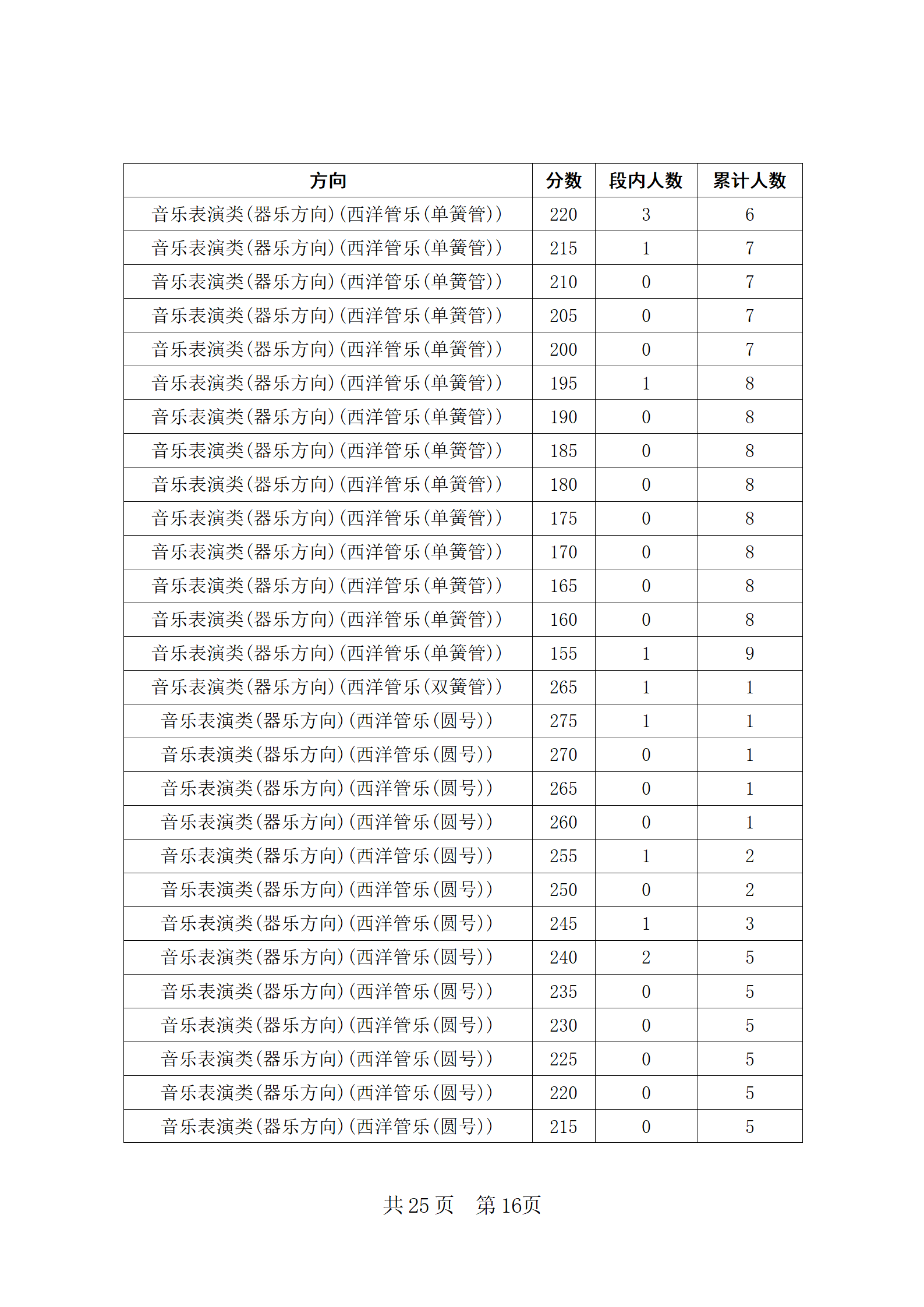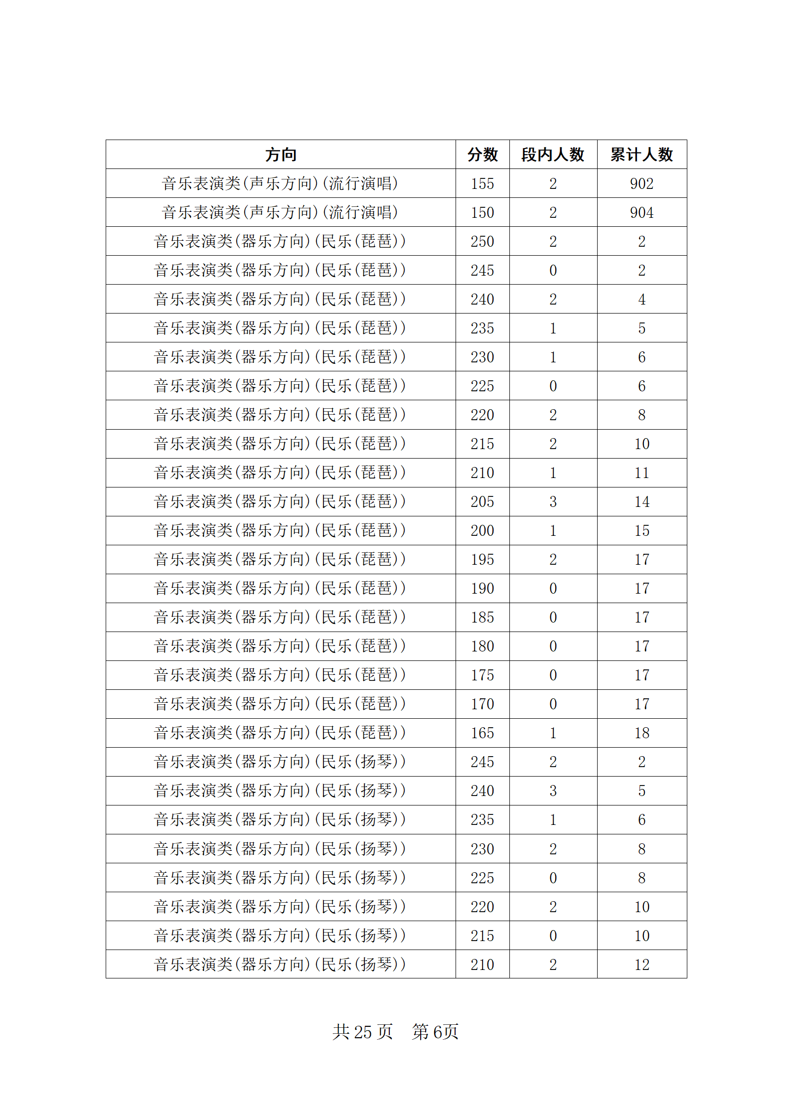 四川省2024年普通高等学校招生音乐类专业统考合格线上五分段统计表