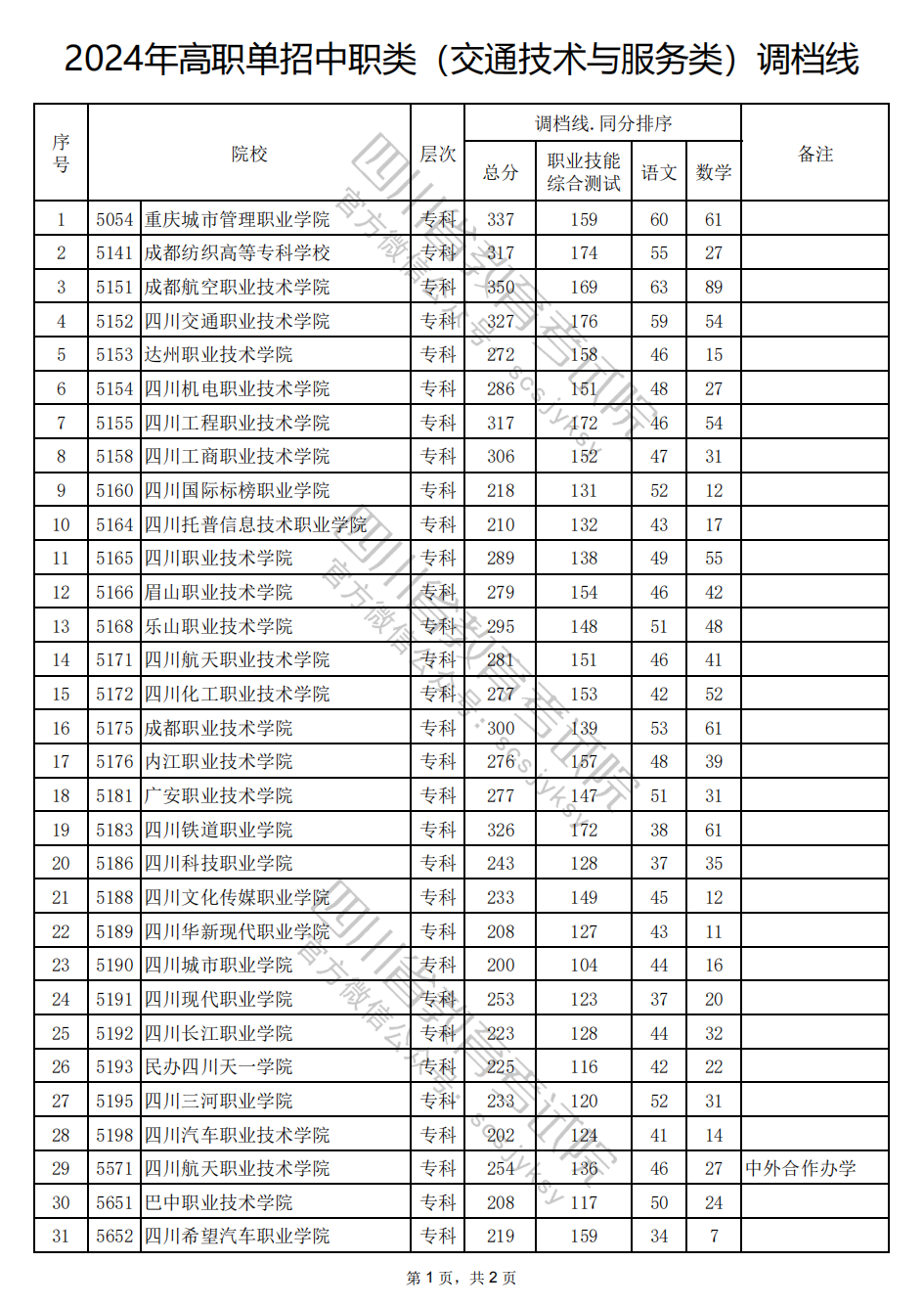 四川省2024年高职单招通告(一)