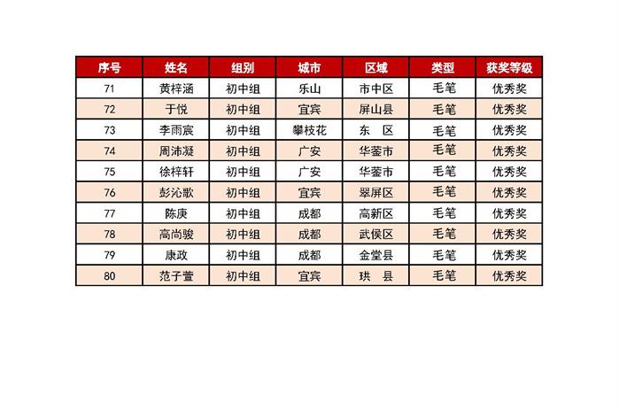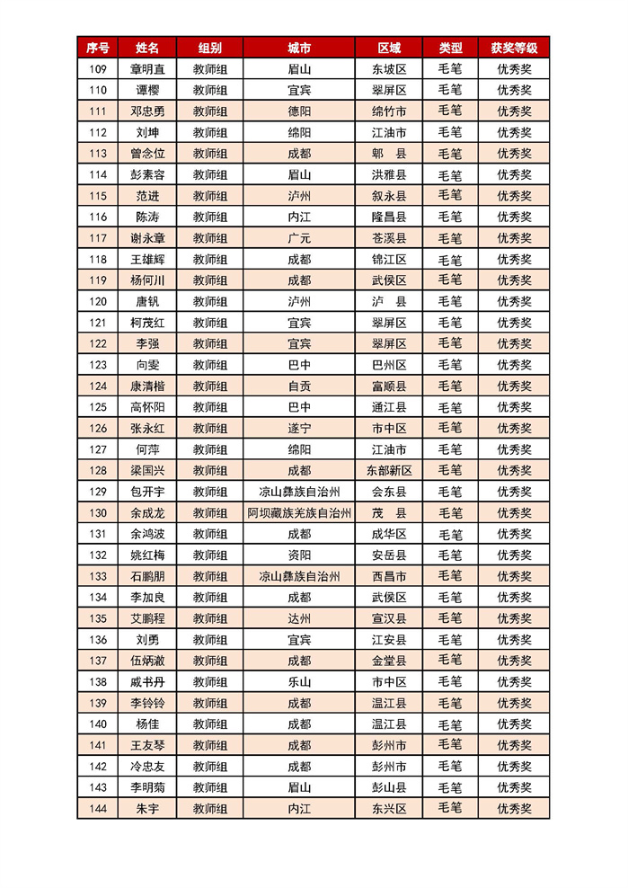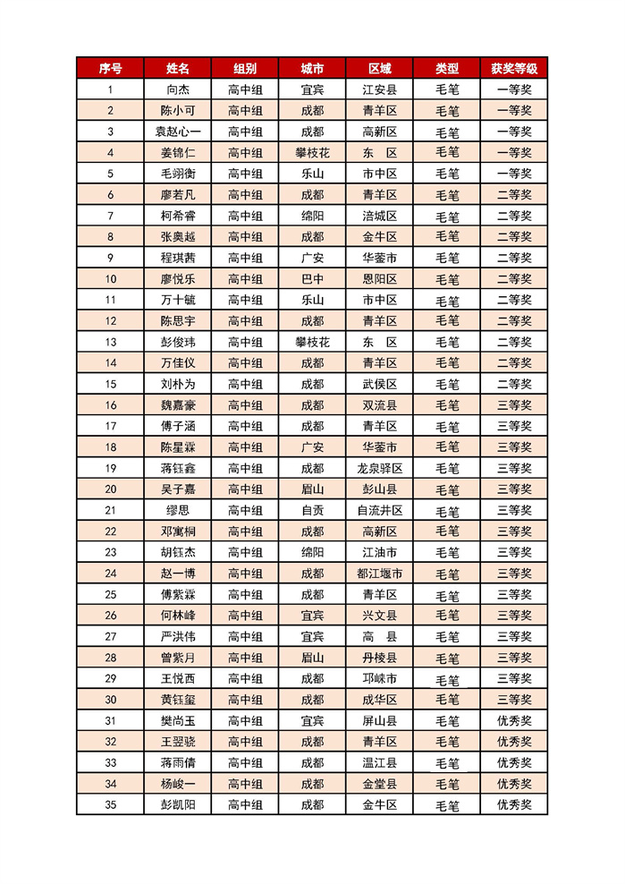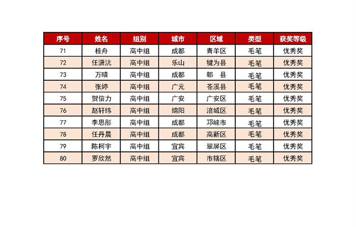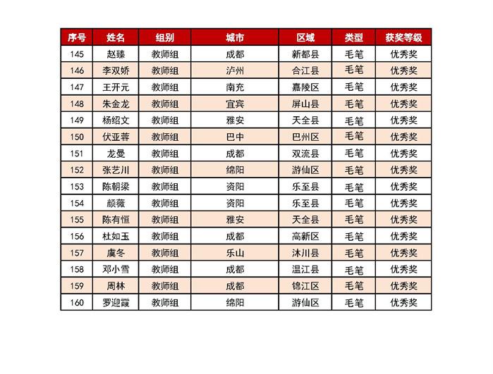 四川省首届“书法人生·墨香校园”主题书法大展公益活动获奖名单已于5月13日-5月17日公示,根据活动安排,现将获奖名单公布如下: