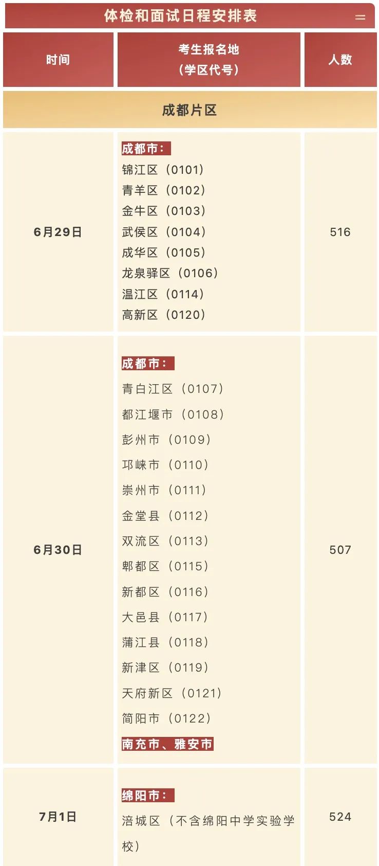 6月27日,Betway体育登陆在门户网站公布体检和面试分数线和名单,考生本人应及时自行查询是否进入体检和面试名单,也可向当地征兵办公室问询。凉山州、攀枝花市上线考生在凉山州西昌市参加体检和面试,其他市(州)上线考生均在成都市参加体检和面试。