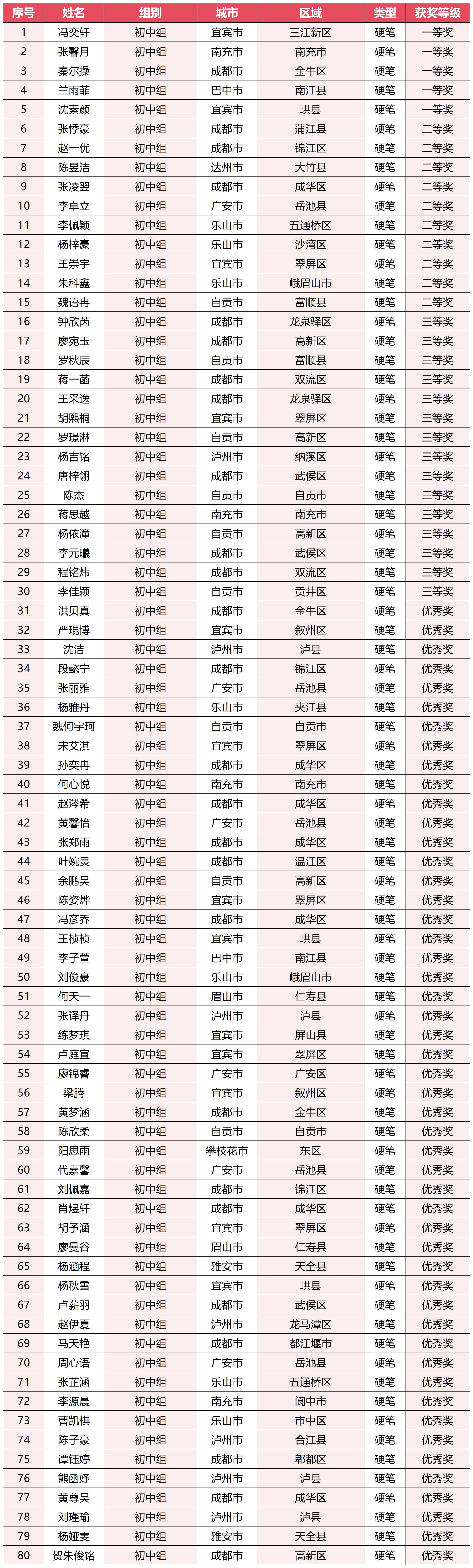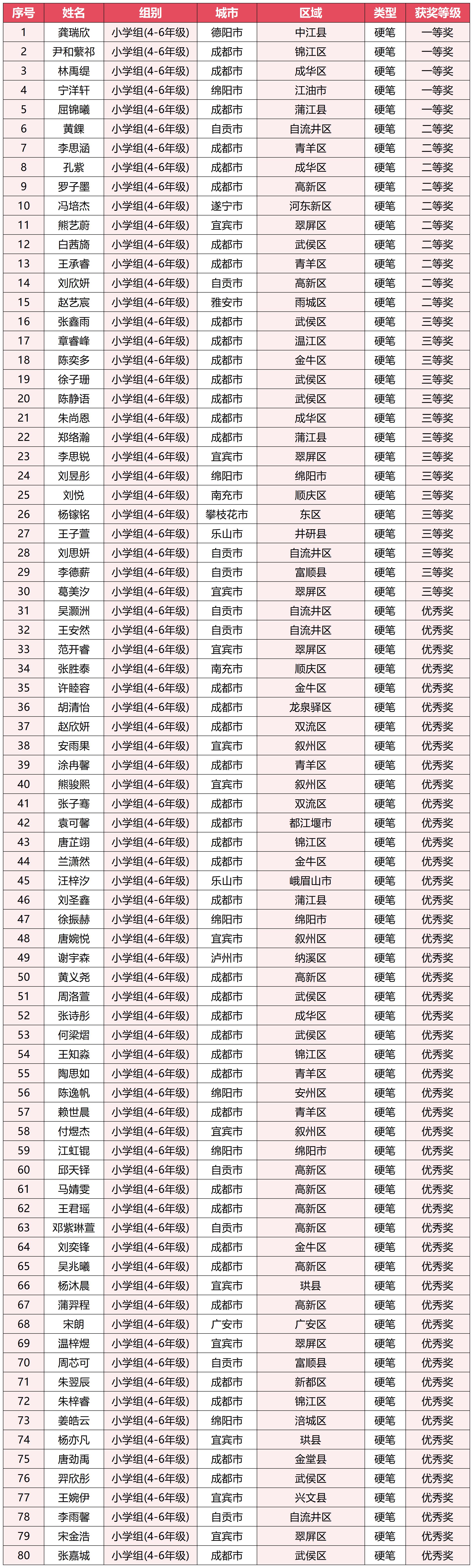四川省第二届“书法人生·墨香校园”主题书法大展公益活动获奖名单公示