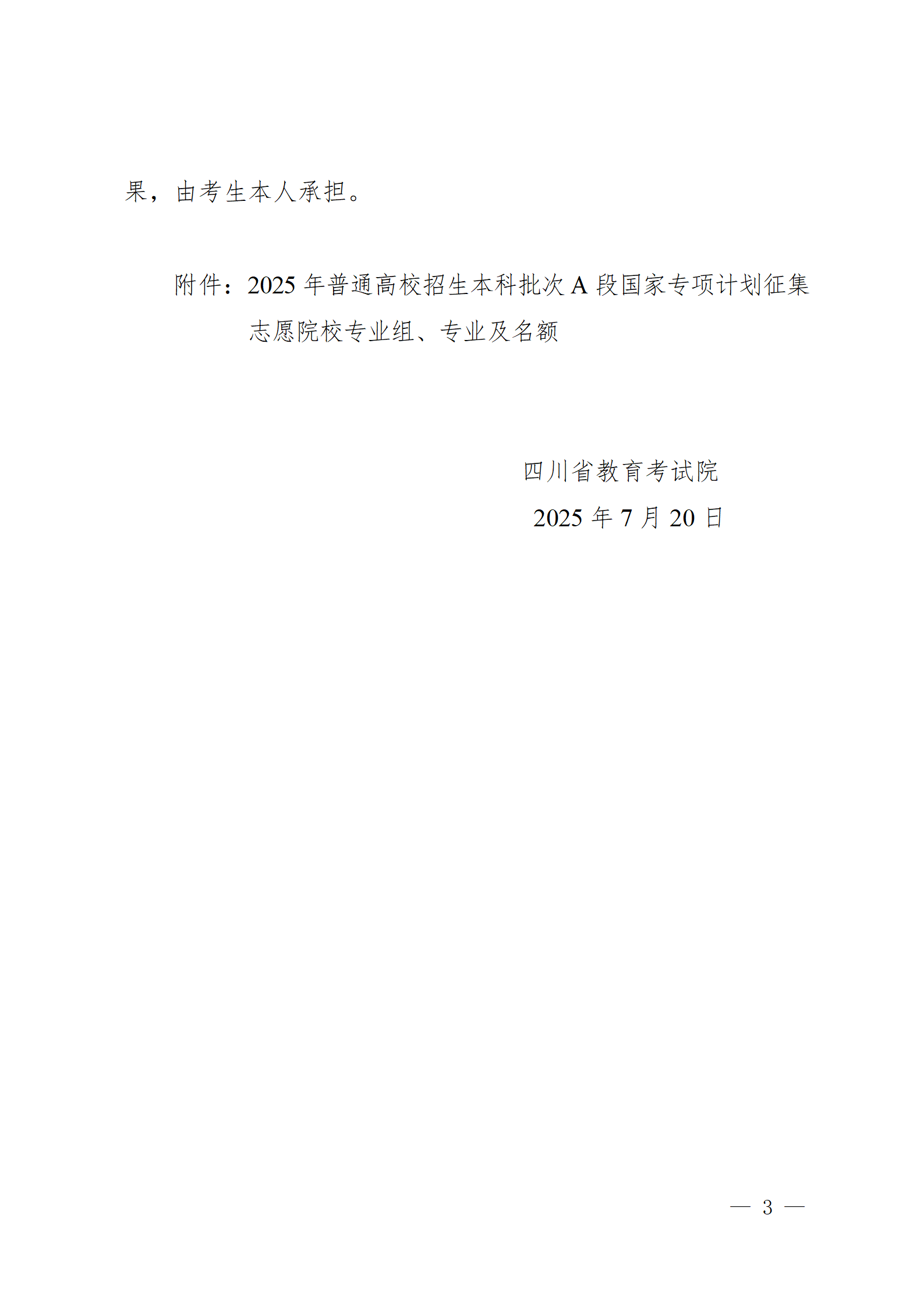 关于本科批次A段国家专项计划未完成计划高校征集志愿的通知