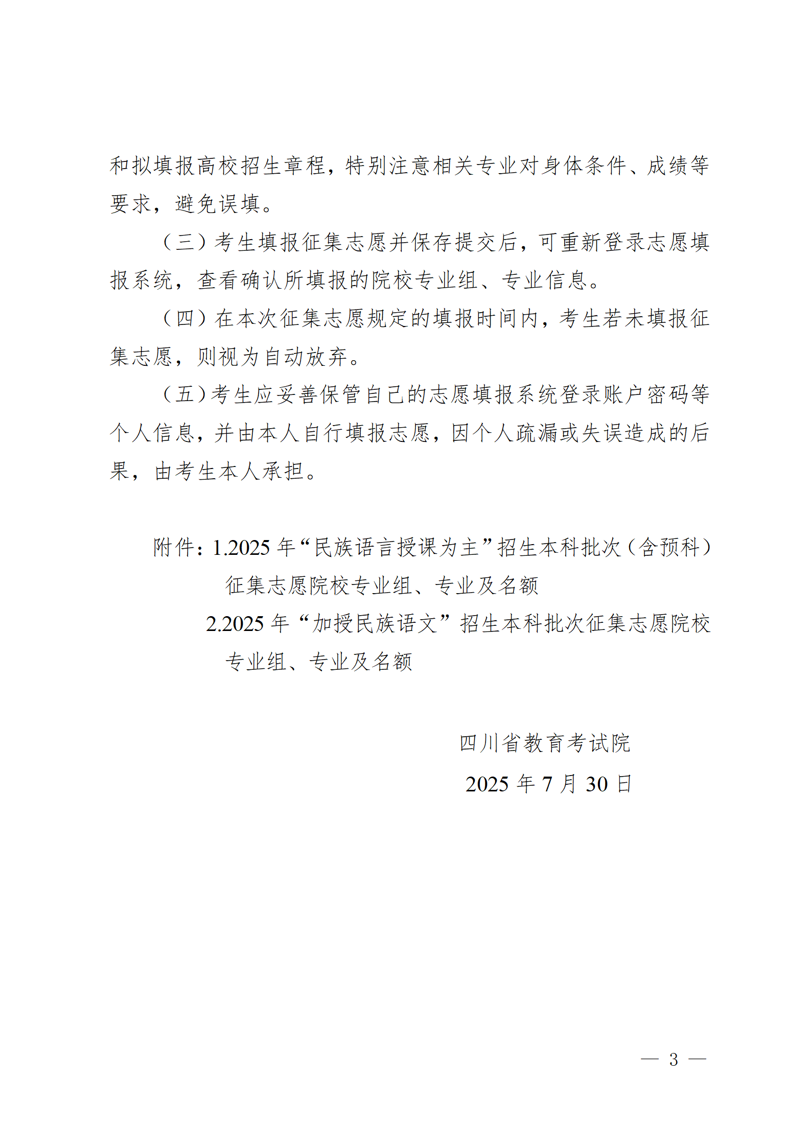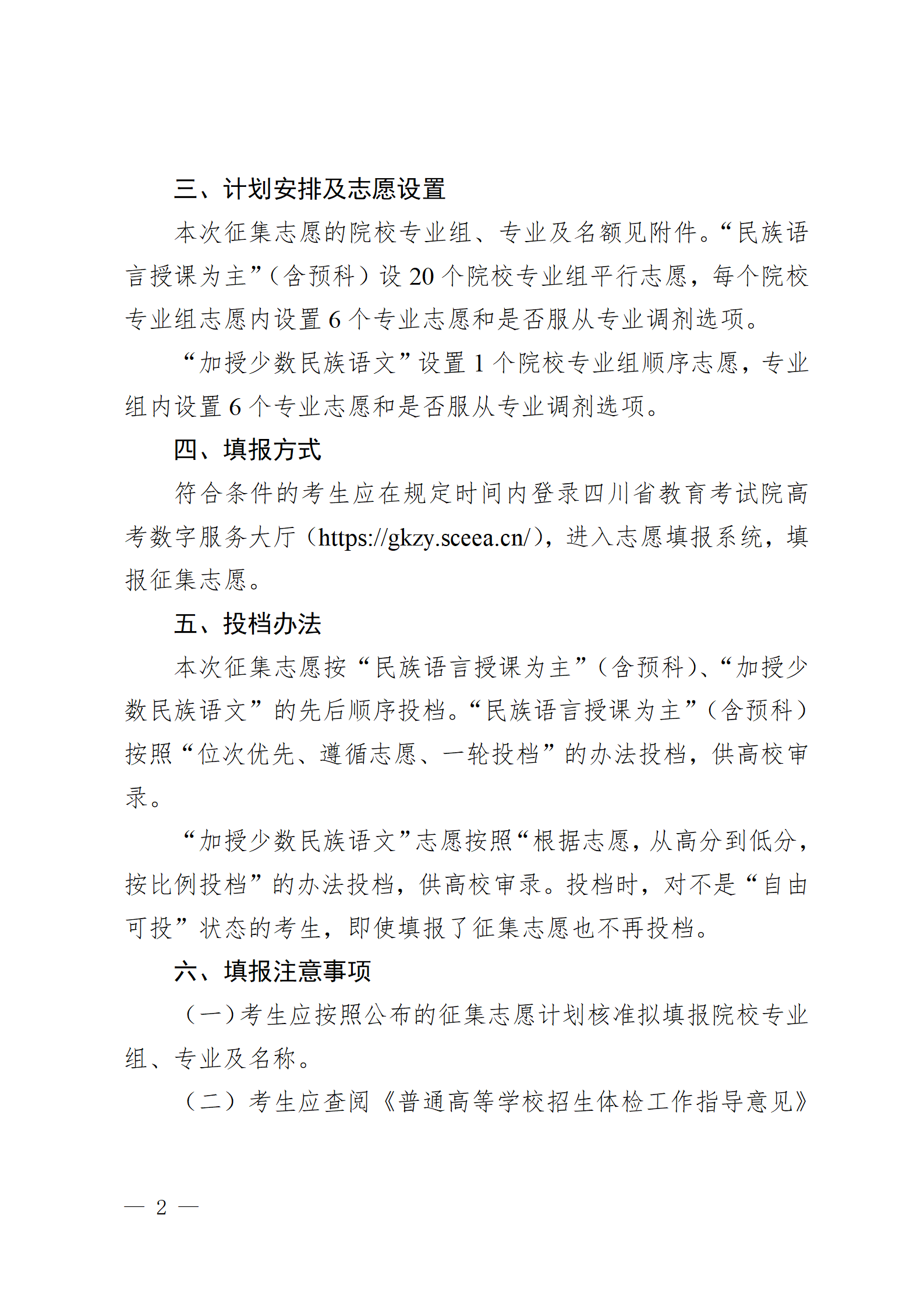 关于本科批次原“少数民族语言授课为主”“加授少数民族语文”征集志愿的通知