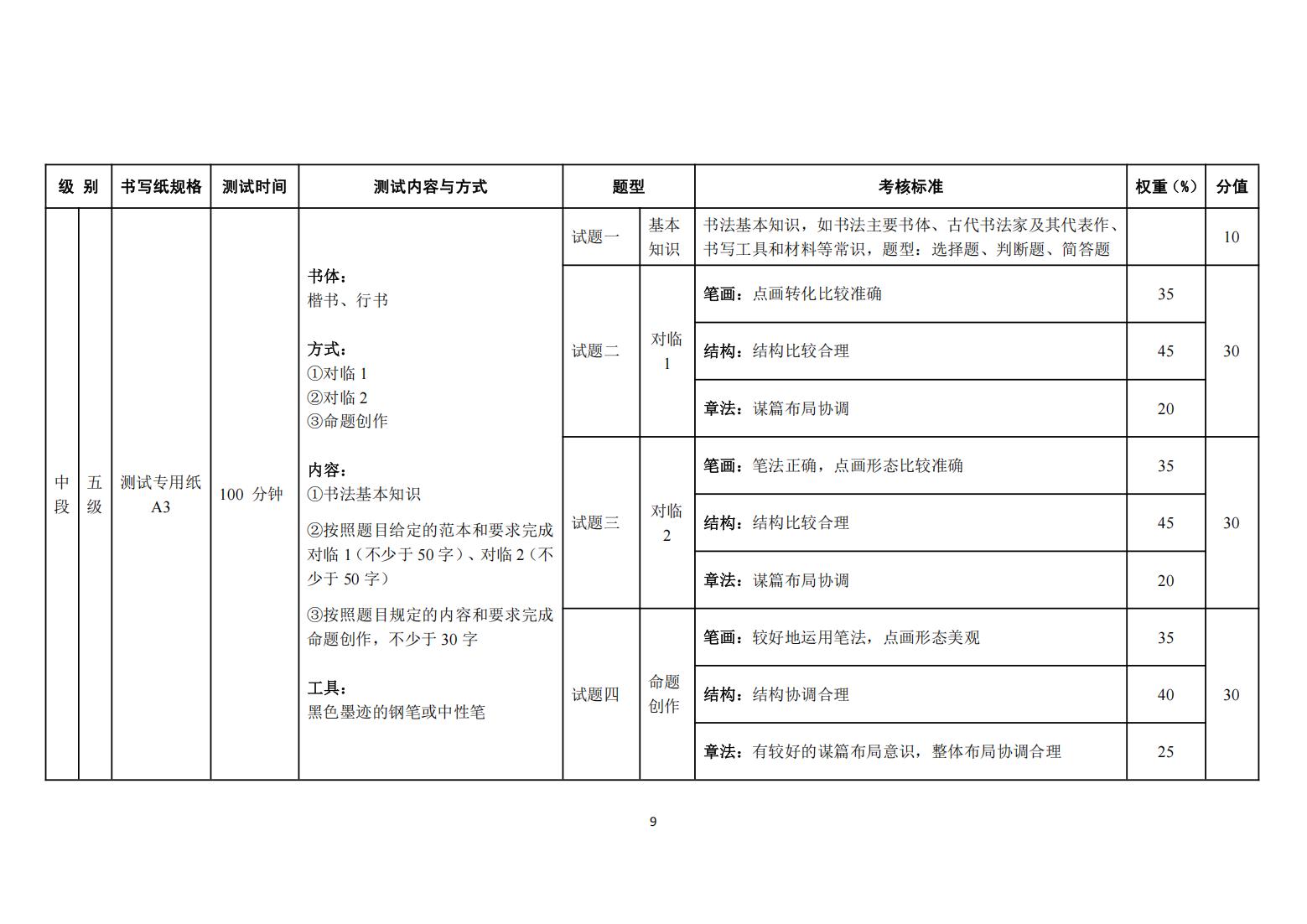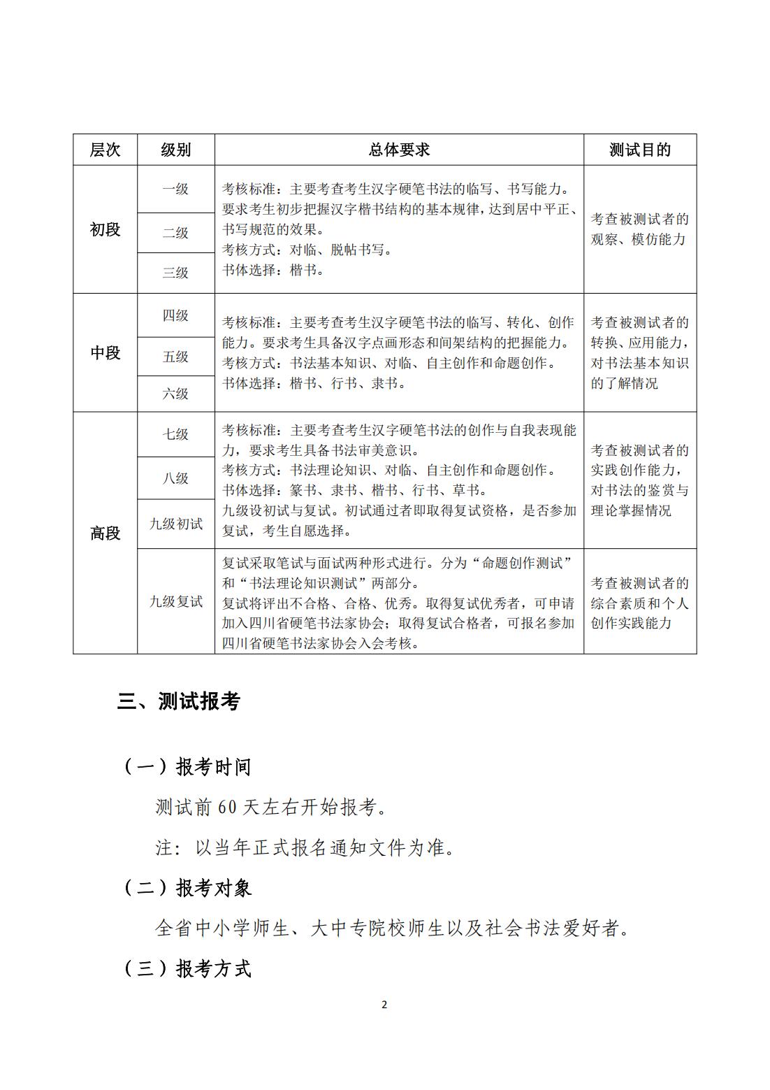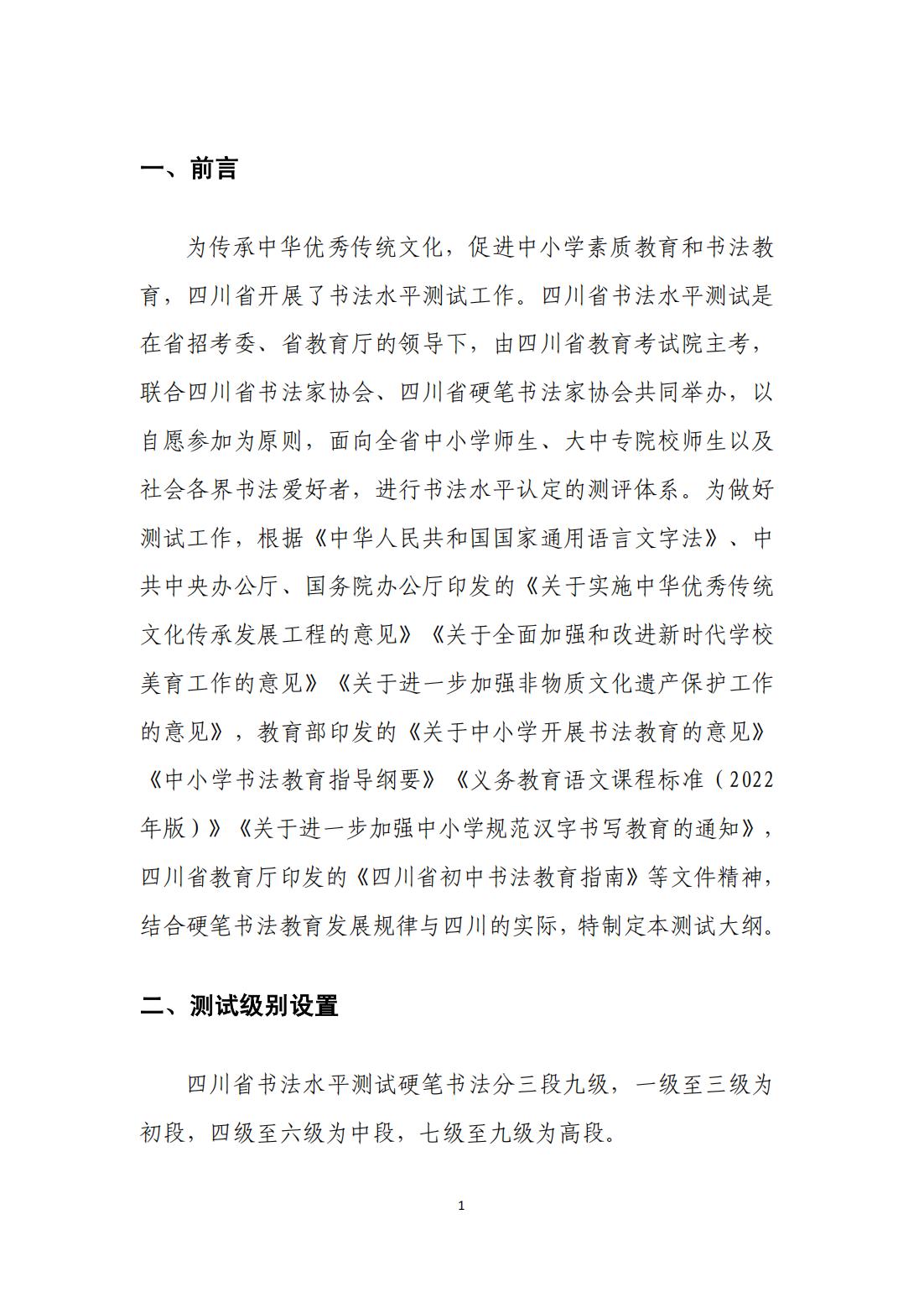 四川省书法水平测试硬笔书法测试大纲(2025年版)
