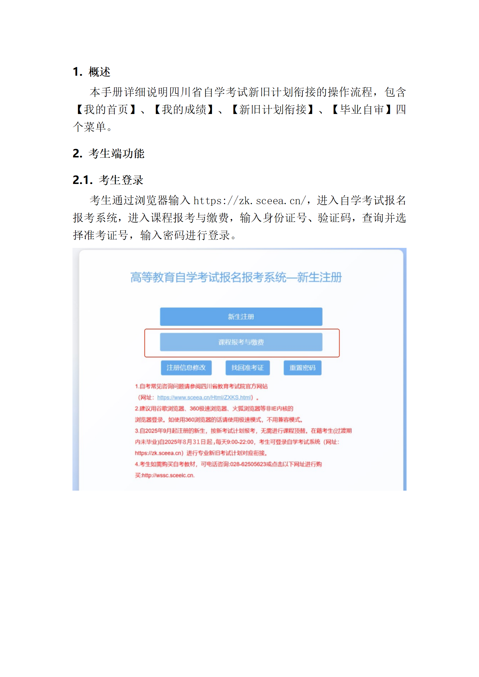 四川省高等教育自学考试新旧计划衔接 考生操作说明