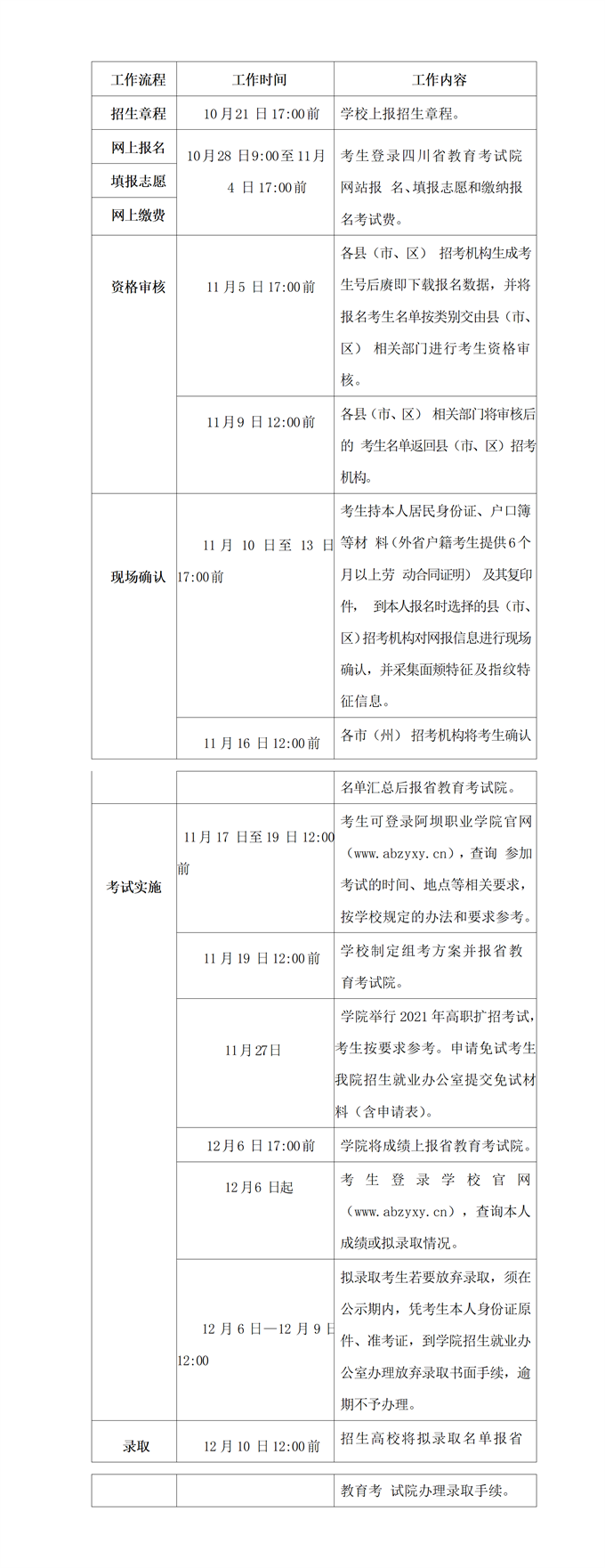 阿坝职业学院2021年高职扩招专项工作招生章程